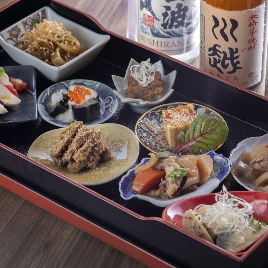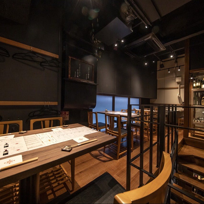 解放感たっぷりの落ち着いた雰囲気の店内で、中央のオープンキッチンを眺めながら、自慢の博多こだわり飯と九州の地酒をゆっくりと堪能できます。