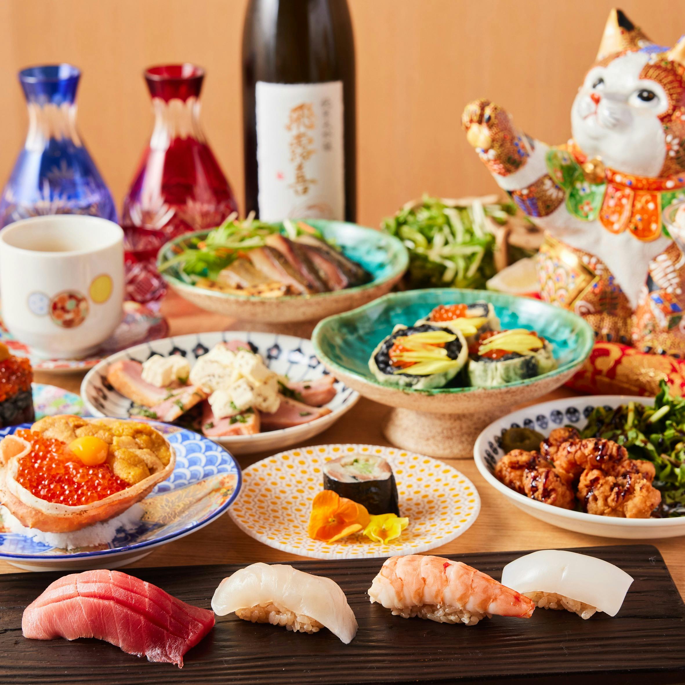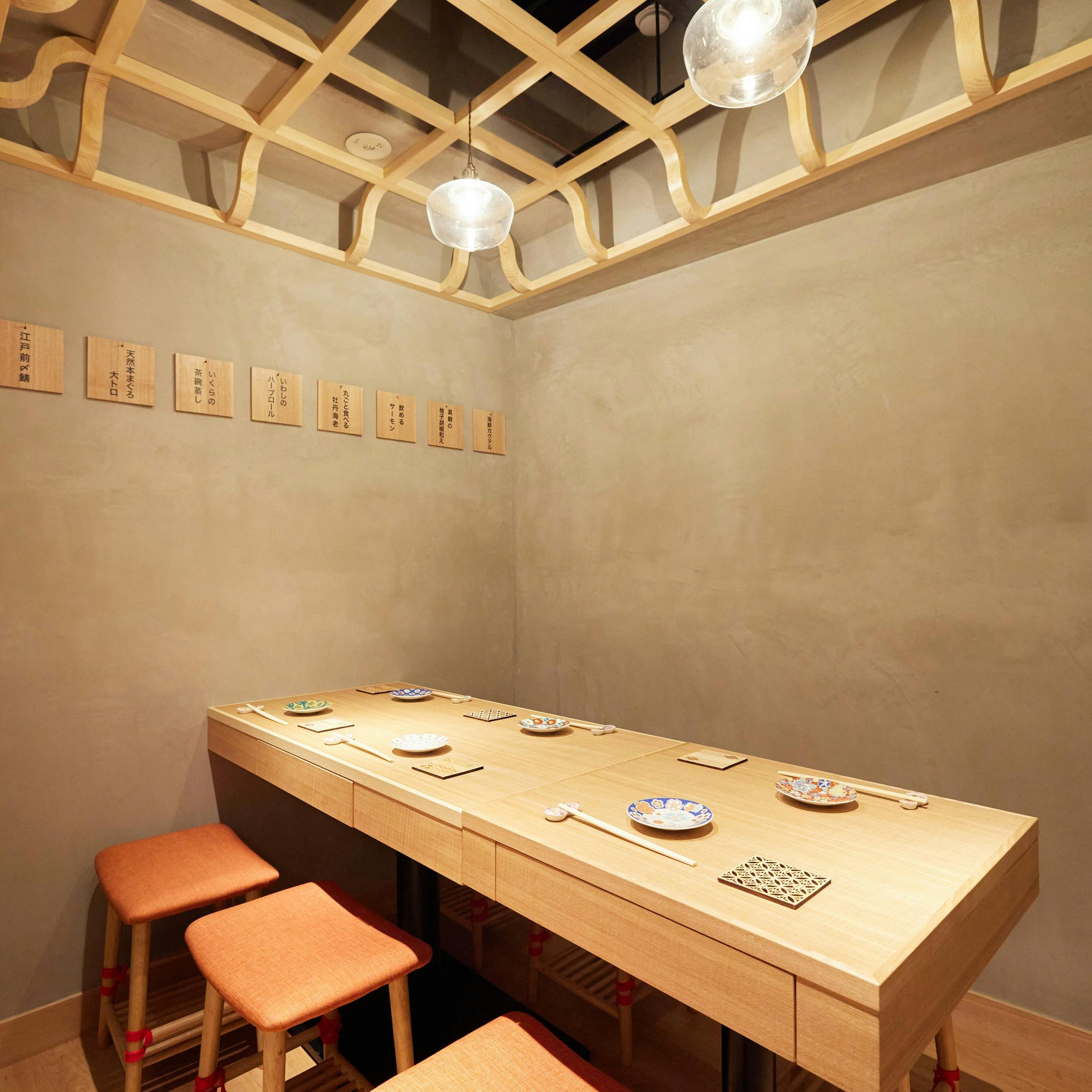 恵比寿駅から徒歩2分。和モダンな空間でカジュアルに、寿司とワインのマリアージュをお楽しみいただけるお店です。伝統的な寿司の技術を基に、シャリ・ネタ・煮切り醤油を一新し、高級店にも劣らないクオリティでご提供いたします。ソムリエが厳選した20種類以上のナチュールワインと、日本各地から取り寄せた約10種類の日本酒も取り揃えており、寿司とのペアリングをお楽しみいただけます。居心地の良い空間で、こだわりの寿司とお酒を心ゆくまでご堪能ください。