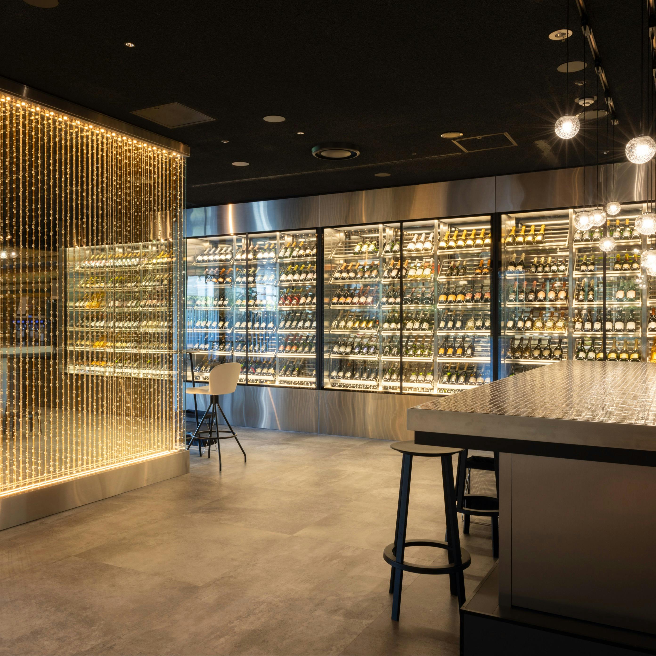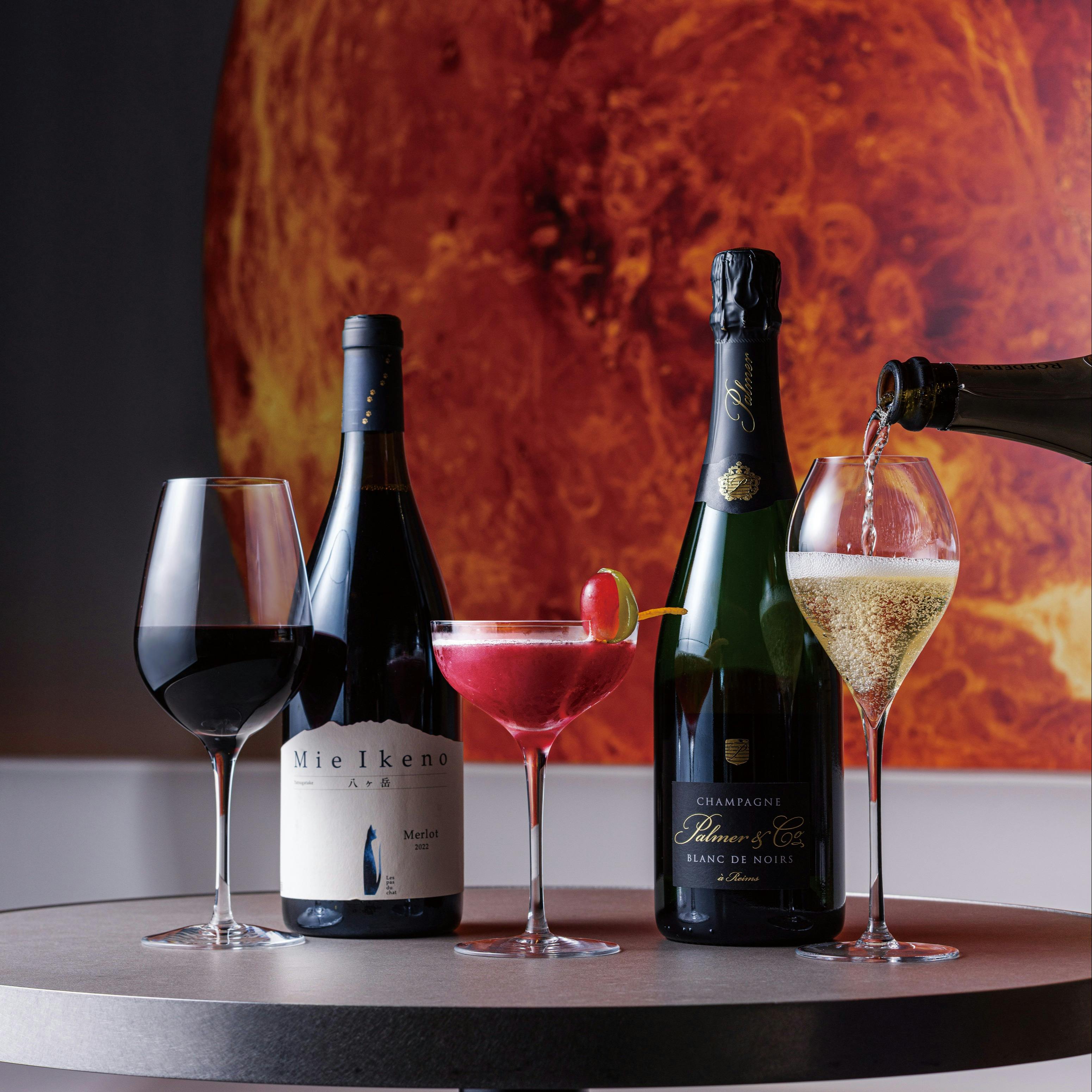 「THE RENDEZ-VOUS AWA」は、集いの前後や日比谷での観劇やお買い物後に、気軽にシャンパンを楽しめるバーです。店名には「Avant(前)」と「Apres(後)」、そしてシャンパンを意味する「Wine」を掛け合わせ、集いのスタート地点と終着地点としての意味が込められています。豊富な134銘柄のシャンパンを揃え、季節のおすすめや希少な銘柄を常時10種類程度グラスで提供。泡と金星をイメージしたデザインが、非日常的な優雅な空間を演出します。