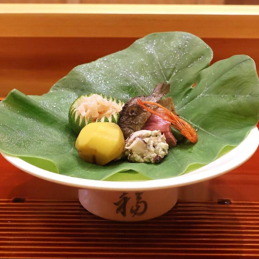 京都らしい風情を感じる四条花見小路から、一本入ったところに佇んでいる端正な数寄屋造りの店内では、京都の四季を感じさせるさまざまなとれたて食材が京都の名産地から運ばれ食膳を彩ります。料理人・槌井氏が妥協のない食材選びとそれを生かす技で京都の四季を表現します。