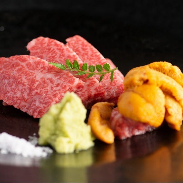 香春口三萩野駅から程近い【肉のながおか】九州各地より厳選した黒毛和牛とワインで皆様をおもてなししております。上質な肉は、それぞれの肉質に合わせた方法で調理。自家製ダレやドレッシング、ワイン塩…料理と相性の良い調味料でお楽しみ頂けます。上質な肉料理とご一緒に楽しんで頂きたいワインは、料理と合う銘柄がメイン。店内は、ゆっくりと食事を楽しめる環境を整えているので、どなたも寛ぎの時間をお過ごしください。