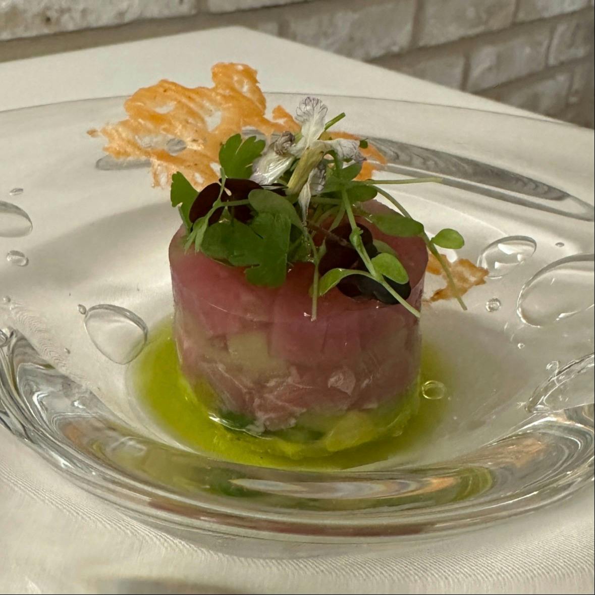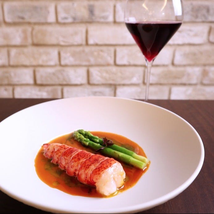 当店は、フレンチと美酒のペアリングが楽しめる完全予約制のレストランです。旬の食材を使った料理やフォアグラ、オマール海老を使った特別なコースを、お客様に合わせてご用意しております。おすすめの「ペアリングコース」では、ソムリエと酒ディプロマの資格を持つシェフが厳選したワインや日本酒を6種類お楽しみいただけます。落ち着いた色合いのスタイリッシュな空間は、記念日や接待など大切な方とのお食事にぴったりです。