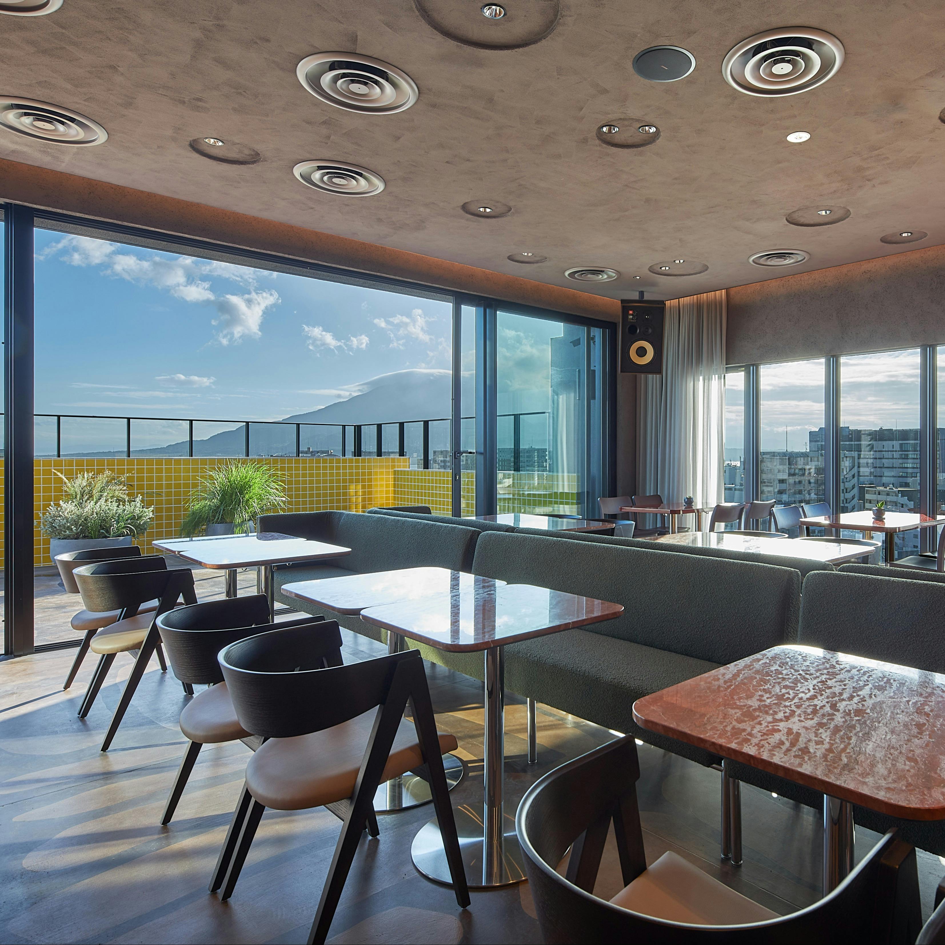 鹿児島県産の新鮮食材をふんだんに使った料理を楽しめる、天文館随一のルーフトップバー&ビストロ『THE ROOF』。名シェフ仲野智博が監修した多彩なメニューを、モーニング(宿泊者限定)からディナーまでオールデイでご堪能いただけます。桜島を望む開放感あふれるテラスでは、特製カクテルも味わえ、心地よいひとときを提供。スペイン製炭火オーブン“ジョスパー”を使用したグリル料理を始めとした食事はもちろん、アペリティフやディナー後のカクテルまで、シーンに合わせてお楽しみください。