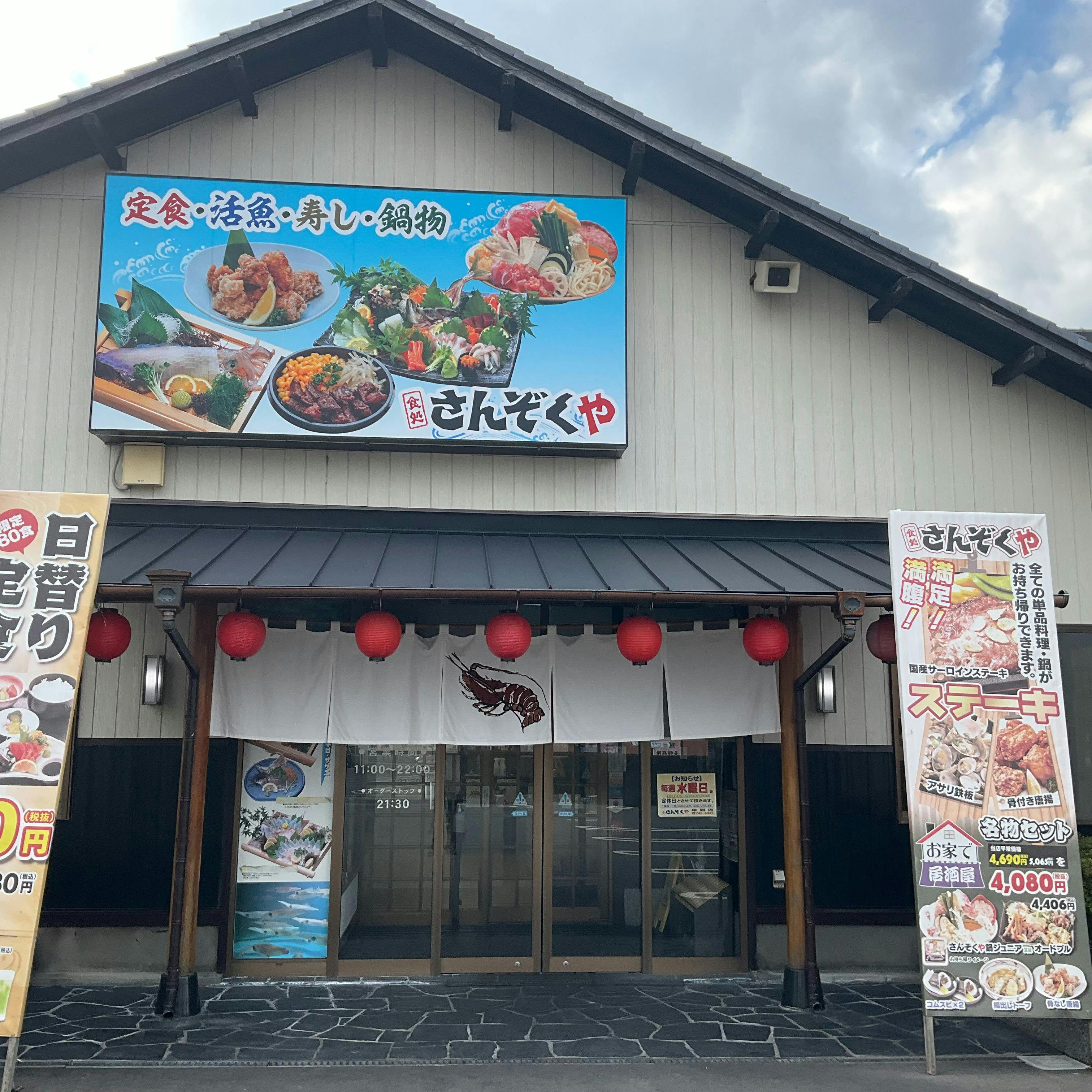 中間市にある「さんぞくや」は、大人数でもゆったりお食事が可能な和食処です。店内にはテーブル席、座敷席、掘りごたつ席、座椅子席をご用意し、あらゆるシーンに対応。名物のイカやアジの活き造りをはじめ、ボリューム満点の鍋料理、会席コースなど、お子様からご年配の方まで楽しめるメニューが豊富です。ランチは夕方まで通し営業。バリアフリー設計、車椅子用トイレ、広い駐車場も完備しております。