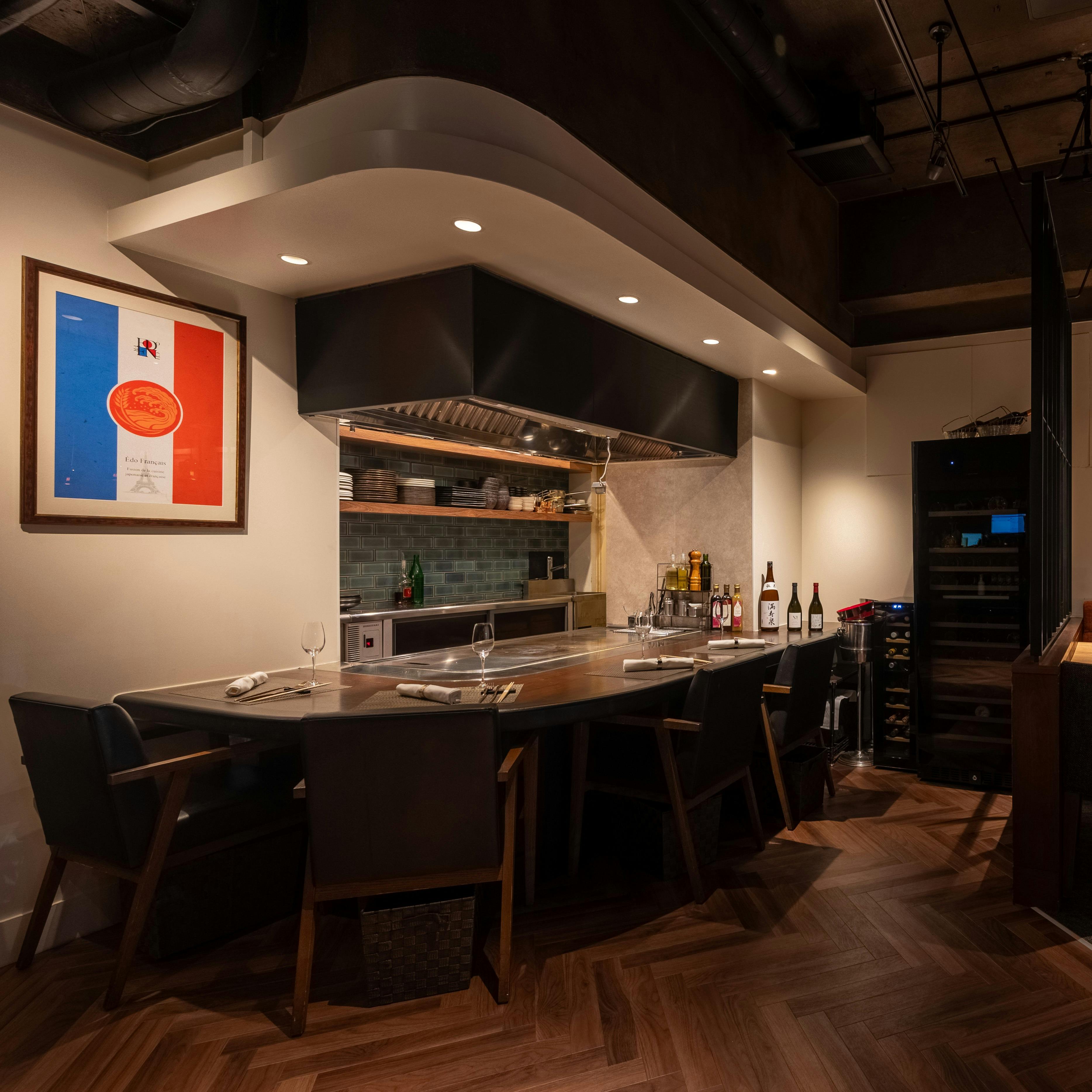 落ち着いた大人の空間が広がる「恵伝」では、うかい亭出身のシェフが厳選した日本の恵みの季節食材と伝統、文化、調理法をフレンチの食材や技法と融合させたイノベーティブな鉄板焼き「江戸フレンチ」をご用意致します。相性抜群の日本酒やワインを 合わせることで五感を刺激します。大切なデート、接待、記念日にも最適。カウンター席やプライベート感を重視した個室も完備。贅沢な料理とおもてなしをお楽しみください。