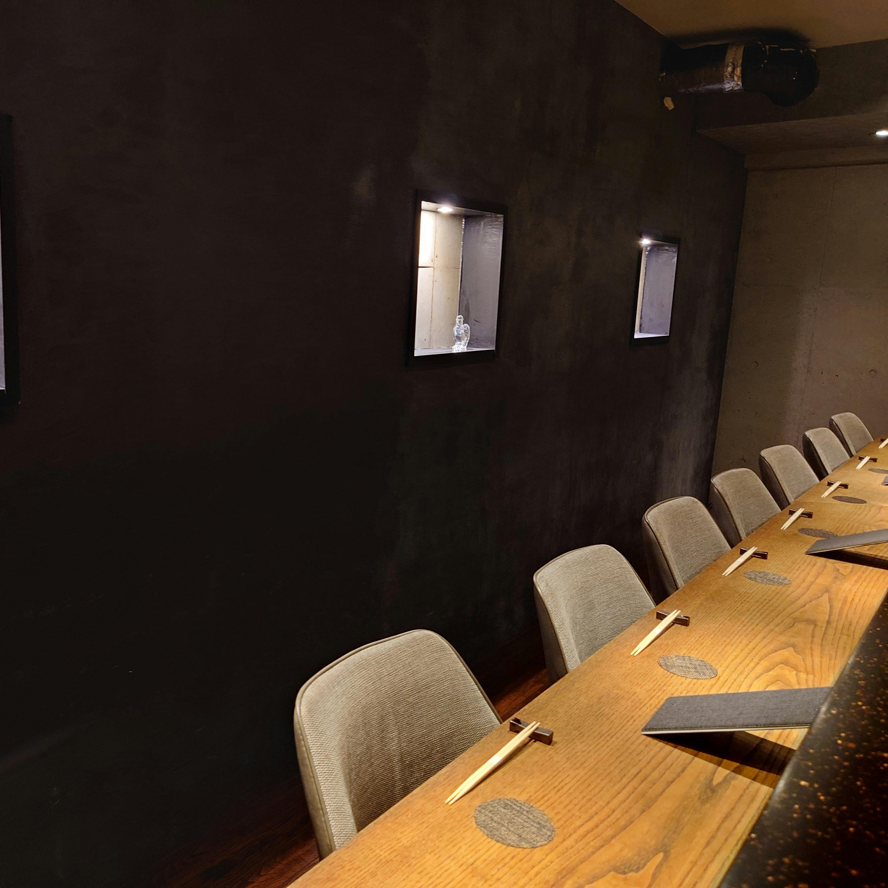 落ち着いた雰囲気の店内はカウンター席のみ。少人数で貸切も可能なので、接待や特別な場面にも最適です。静かな空間で、美味しい料理とお酒を心ゆくまでお愉しみください。