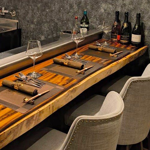 「Le lien」は某ホテルにて20年以上勤めた経歴を持つシェフが手掛ける、鉄板フレンチをお愉しみいただけます。メインのステーキは、山形から直送される米沢牛・米沢豚や、確かな目利きで厳選した黒毛和牛を使用。また、シェフが現地まで赴き仕入れた「三浦野菜」をふんだんに活かした野菜料理も自慢。フランスワインやジャパニーズウイスキーと一緒にご堪能ください。店内はシックで落ち着いた大人の隠れ家を演出。接待・会食にも最適です。