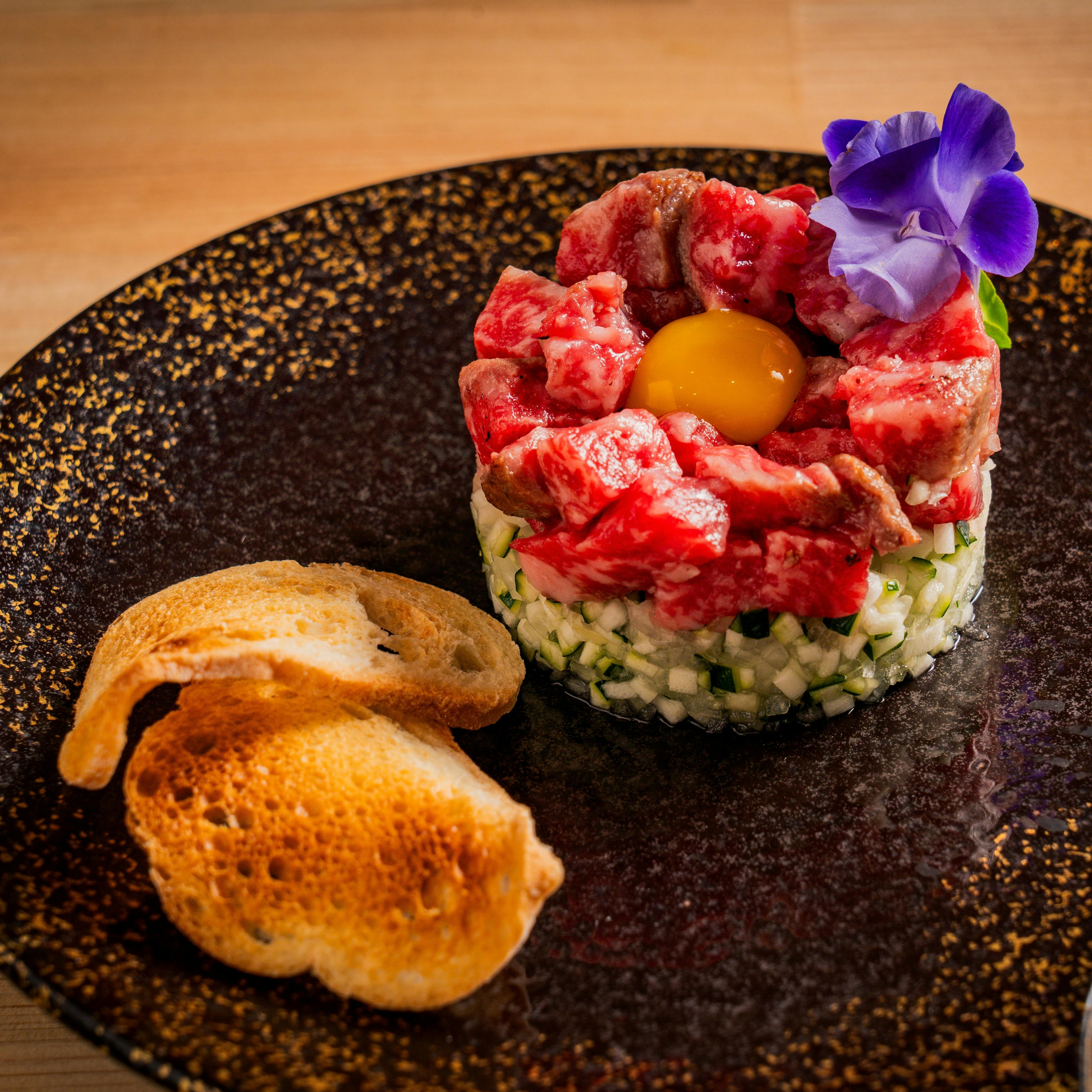 渋谷の喧騒を忘れられる、隠れ家のような空間。洗練されたカウンター席で、こだわりの黒毛和牛と旬の野菜を使った究極のコースをご堪能ください。焼肉だけにとどまらず、鮨、サンドなど多彩な絶品料理の数々をお愉しみいただけます。普段のお食事はもちろん、デートや記念日等の特別な日にも最適。洗練された空間で特別なひとときをお過ごしください。