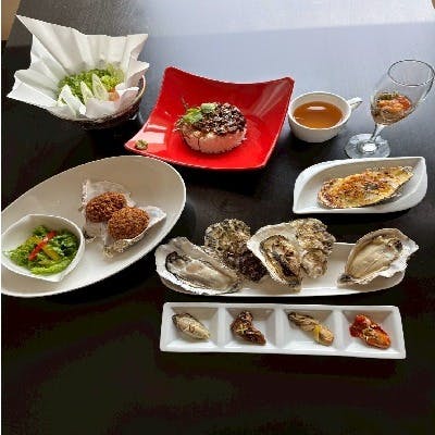 松島海岸駅前の好立地!「牡蠣が食べたい」と思ったら、ふらりとおち寄りください。当店は、牡蠣の魅力を最大限に引き出す専門店です。名物「牡蠣のひつまぶし」は、まずそのまま、次にオイスタースープをかけてお茶漬け風に、二度楽しめる斬新な逸品。さらに、新鮮な殻付き牡蠣は、生・炙り・焼きの三種の調理法でご提供。食べ比べで、産地や火の入り方による繊細な違いをご堪能いただけます。特におすすめは、お一人様でも贅沢に楽しめるセットメニュー。牡蠣フライや特製ワインも付いて、ボリューム満点なのに大変お得です。女性の一人旅の方も大歓迎!旅の素敵な思い出に、心ゆくまで牡蠣を堪能しませんか?お土産には人気の牡蠣のオイル漬けもどうぞ。