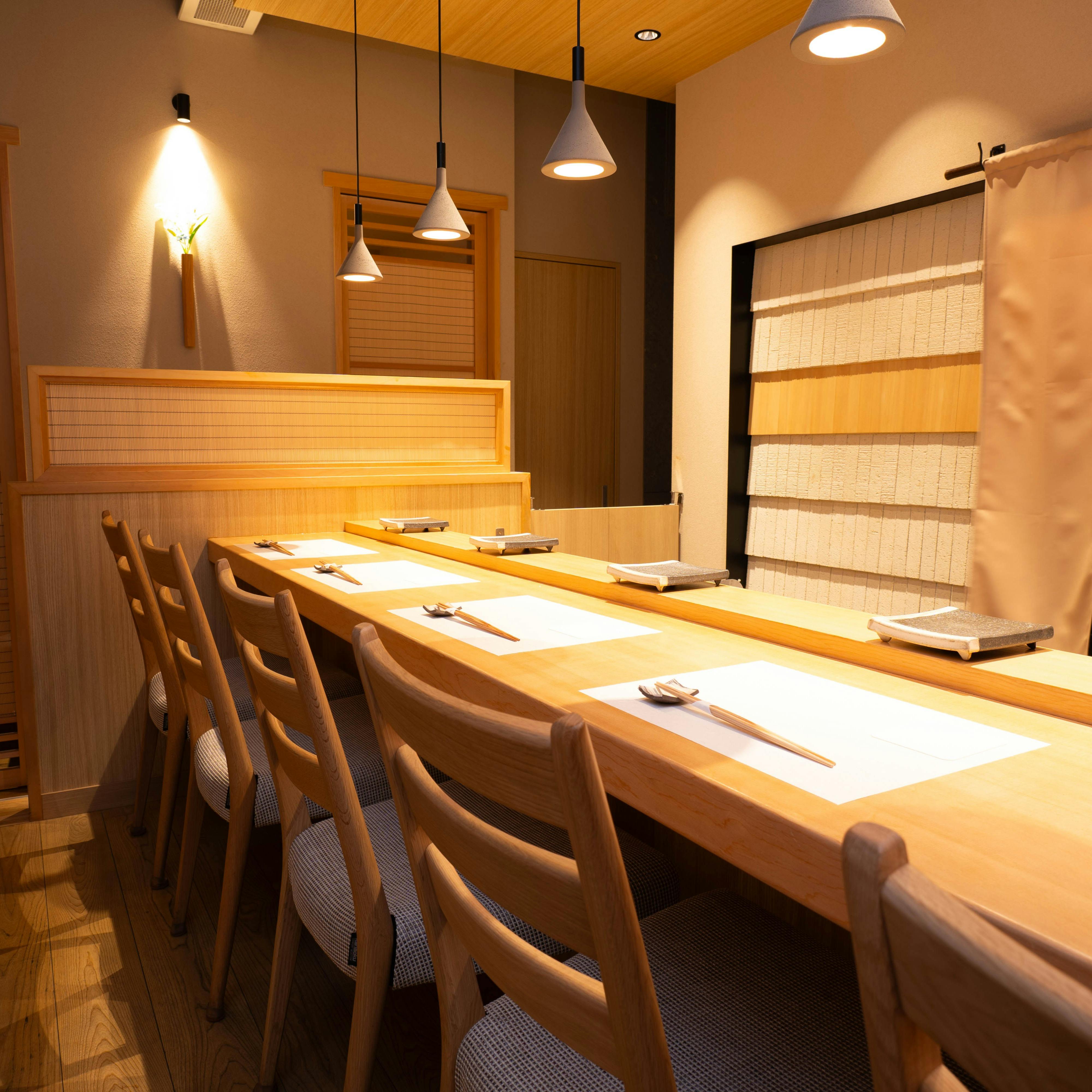 秋葉原の喧騒を離れた静かな一角に位置する【鮨 麻生】は、完全予約制の特別な空間です。カウンター6席と個室テーブルを備えた店内は、洗練された雰囲気で、接待や記念日など特別な日にふさわしい場となっています。メニューはお任せコースのみで、四季折々の旬の魚を活かした寿司や一品料理をご提供。シンプルながらも素材の味を最大限 引き出した料理は、職人の技術と情熱を感じさせます。人数に応じた貸切も可能で、ビジネスシーンや大切なイベントにも最適。落ち着いた大人の空間で、心ゆくまで美食をご堪能ください。