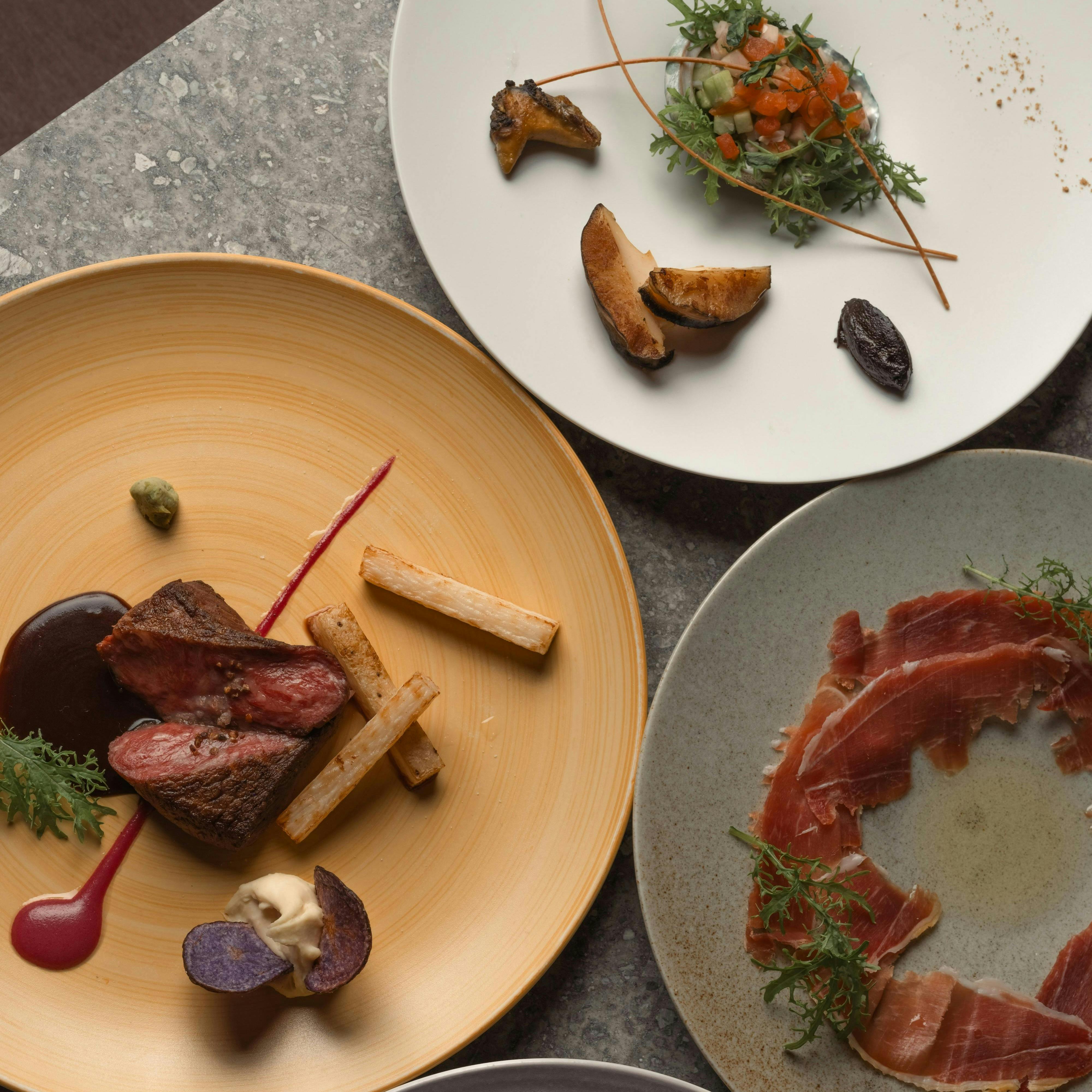 信州の豊かな自然が育む旬の食材を、フランス料理を中心としたコースでご提供いたします。地元産の食材を最大限に活かした一皿一皿が、食材本来の美味しさを引き出します。また、洞爺湖サミットで首脳をもてなした日本ワインのエキスパートが厳選した、全国のワイナリーから選りすぐった約1,000本の日本ワインもご用意 。信州の味覚とともに、特別なワインのペアリングをお楽しみください。北アルプスの雄大な風景を眺めながら、心満たされる贅沢なひとときをお過ごしください。