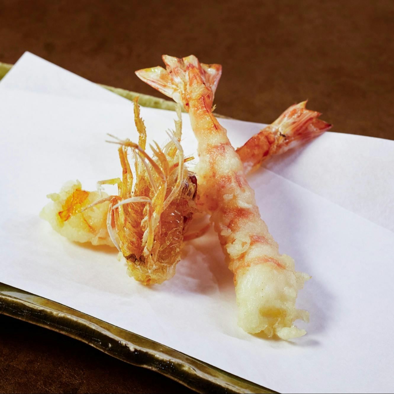 和モダンの落ち着いた空間で、熟練の職人が目の前で繰り広げる天ぷらの世界。 特別に厳選した油で揚げることで、さっぱりとした口当たりながら素材本来の旨味を存分に引き出しております。 季節の食材を活かした天ぷら10種には、風味豊かな車海老2尾をはじめ、その日一番の食材を。優しい出汁香る先付けや新鮮な造り、焚き合わせを添えて、最後の季節のフルーツまで心地よい時間をお過ごしください。