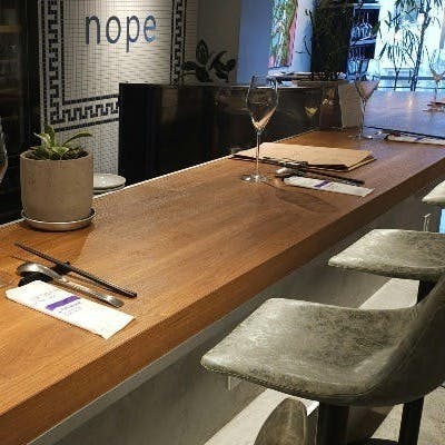 千歳烏山駅から徒歩2分に位置する「nope(ノープ)」は、スパイスを活かした創作中華と厳選されたワインのペアリングが楽しめるお店です。カウンター8席の落ち着いた空間で、目の前でシェフが料理を仕上げるライブ感も魅力。ディナーはコースやアラカルト、金・日曜はランチ営業もあり、特別な日のディナーにも最適です。