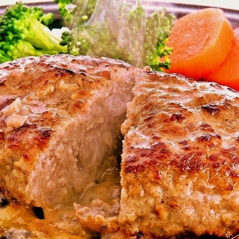 あっぷるぐりむで人気のフードといえば、味と品質に一からこだわり抜いたハンバーグ! シンプルにいただくのはもちろん、ステーキなどのグリル料理とのコンビネーションやハンバーグドリアでなど、選ぶのが楽しくなる様々なバリエーションでご提供いたします