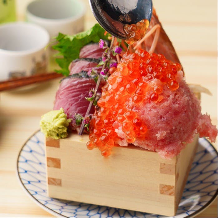 海鮮とおでん、どちらも楽しめるコスパ最強の居酒屋。おでんは1個99円から、ドリンクは198円からご用意。 名物の【海鮮刺身の升盛り】は、海鮮メニューの中でも一番人気。赤エビの甘み、とろけるネギトロの旨み、香ばしいかつおのタタキ、いくらのプチプチ食感が贅沢な逸品です。 【厚切り茹でタン】はじっくり3時間煮込み、噛むたびに広がる肉の旨みとおでん出汁が魅力です。 単品利用はもちろん、130品の食べ飲み放題プランも。 ちょい飲みも、しっかり宴会も。気軽に立ち寄れる一軒です。
