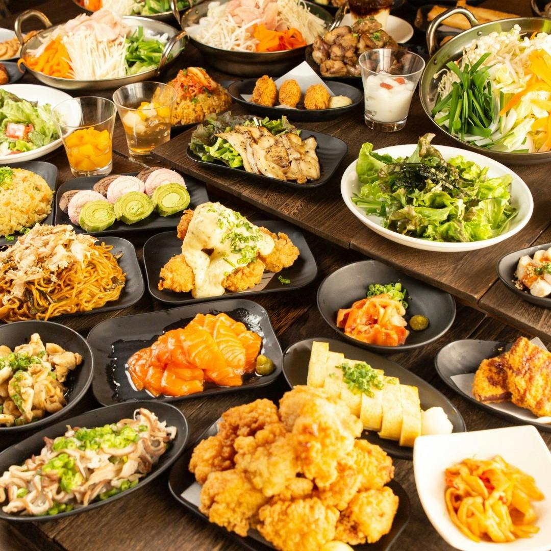 2,200円食べ飲み放題の驚愕のコスパを実現! もつ鍋やお刺身、ステーキ丼やもも焼き、揚げ物、サラダ、デザートまで全70品が食べ放題! ドリンクも濃いめ・薄めが選べて全70品が飲み放題! 貸切や3時間のご利用もOK!! 普段の宴会から忘年会や新年会、歓送迎会、女子会などにおすすめ! 当店を装った類似店にご注意下さい ウェブサイト上でも店名及びデザインの酷似したサイトが御座いますが、当店の屋号は全て「おすすめ屋」で営業しておりますのでご注意下さいませ。 ※お通し、チャージ料一切なし!