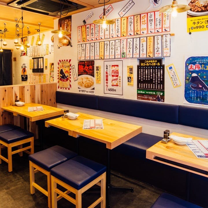 当店名物の焼き餃子は「焼き」にこだわった看板メニューです。野球選手をイメージしたドリンクや、やみつきになる唐揚げ、じっくり煮込んだ肉豆腐などハイボールによく合う酒場メニューが豊富でお値段もリーズナブル。店内に大型のTVモニターを設置しており野球観戦もできるので、ちょっとした宴会にピッタリ。木のぬくもり感じるどこか懐かしい感じもありつつ、清潔感のある店内で皆様を元気にお出迎えします!
