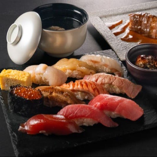 SUSHIROKUは、六本木駅から徒歩3分の場所にある寿司店です。広々とした店内には個室もあり、接待やビジネスでの利用にも適しています。内装はスタイリッシュで、寿司店らしからぬ雰囲気が特徴です。中央にはハイカウンターがあり、カラフルな松のディスプレイが目を引きます。また、当日予約でも本格的なコース料理の提供が可能で、特に「やま幸」のマグロを使用したコースが人気です。