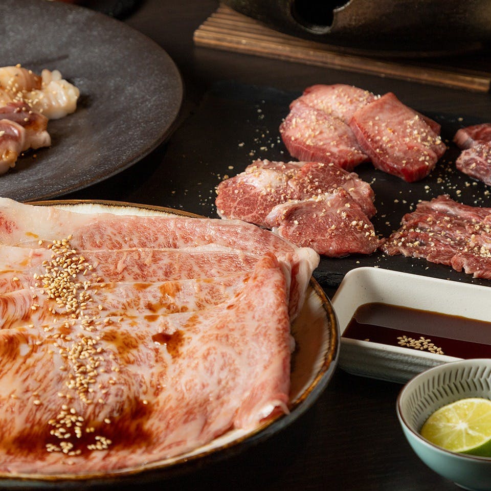 絶妙な火入れで仕上げる炭火焼肉をはじめ、ローストビーフ紹興酒漬け、牛テールの茶碗蒸しなどの肉割烹料理も充実。 コースは、希少部位がおかわり自由な焼肉、旬の食材と愉しむしゃぶしゃぶがおすすめです。 飲み放題でお肉の美味しさに酔いしれてみてはいかがでしょうか?