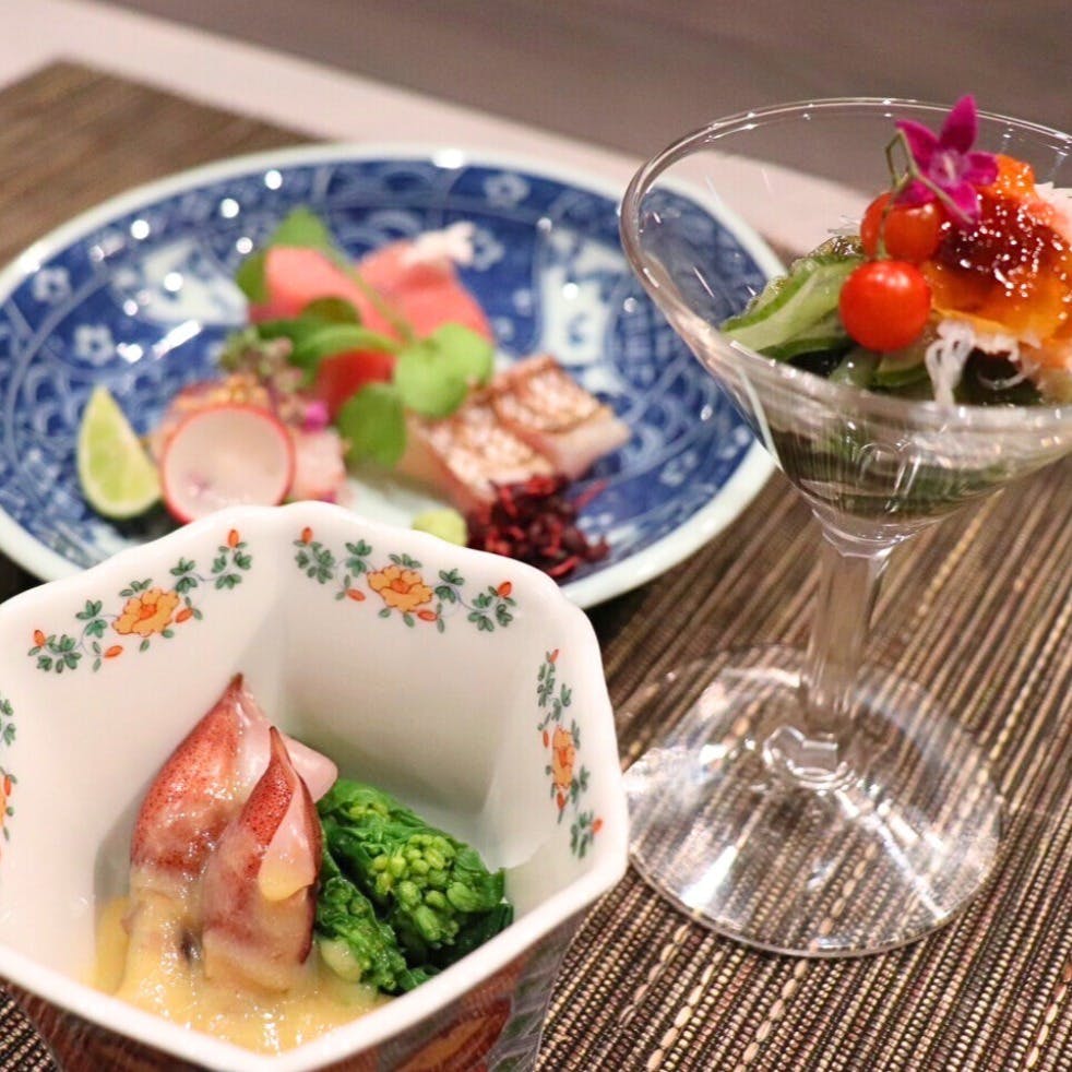 阪急梅田駅から徒歩8分に位置する「天ぷら割烹 羽衣」。修行を積んだ店主が和をベースに洋の要素も取り入れた、創作天ぷらをお愉しみいただけます。契約している漁師や農家から直送される海鮮やお野菜を使用し、旬の新鮮な食材を天ぷらはもちろん、逸品もご用意。厳選した上質な旬素材一つ一つに丁寧に向き合い、美味しくお召し上がりいただく為の手間を惜しみません。気軽にお腹いっぱいお愉しみ下さい。そして、店内にはカウンター席とテーブル席を完備し、ご接待、大人のデートや記念日など幅広いシーンでご利用下さい。
