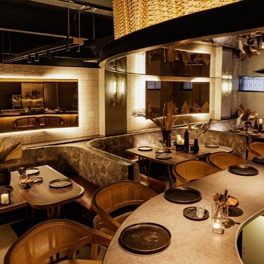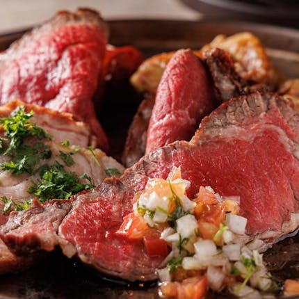 ブラジル式BBQ「シュラスコ」を、贅沢な空間で心ゆくまでお楽しみいただける、至福のひとときをご提供いたします。 熟練の職人が丁寧に焼き上げた、バラエティ豊かなシュラスコをご用意いたしました。牛肉、豚肉、鶏肉など、厳選された素材を最大限に活かした、本格的な味わいをお楽しみください。お客様の目の前で、お好きな量だけ切り分けてご提供いたしますので、いつでも焼きたての美味しさをご堪能いただけます。 おしゃれでラグジュアリーな店内は、パーティーや女子会に最適です。煌びやかなシャンデリアや、落ち着きのあるインテリアが、特別な日のディナーをさらに演出いたします。ゆったりとくつろげるソファ席もご用意しておりますので、優雅な時間をお過ごしください。