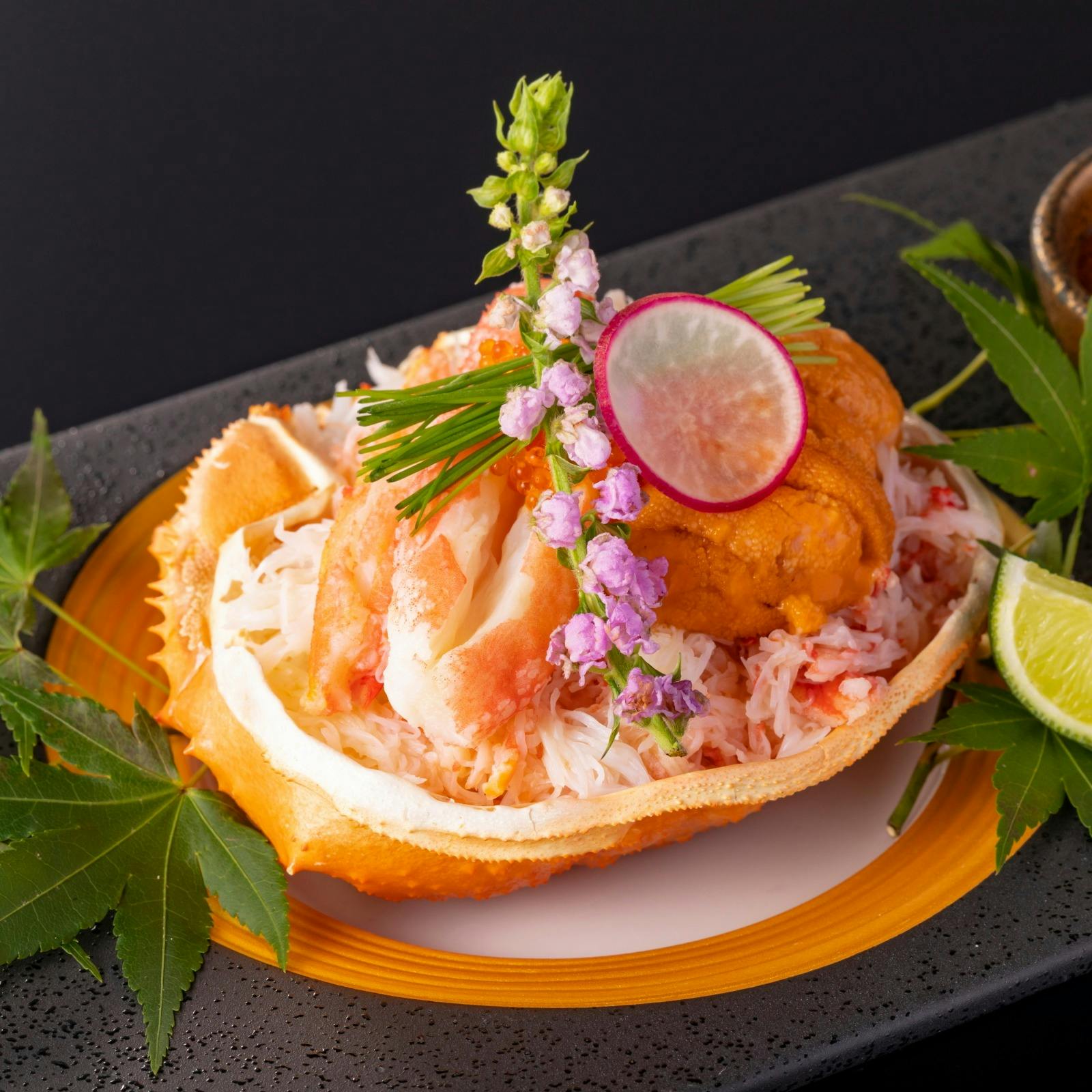 都会の喧騒を忘れ、心落ち着く上質な個室で、極上の蟹料理をご堪能ください。選び抜かれた新鮮な活蟹を、熟練の技で仕上げる贅沢な蟹会席コースは10,000円より。繊細な味わいとともに、至福の時間が広がります。大切な方との記念日や接待、特別なひとときに最適な空間をご用意。洗練されたおもてなしとともに、心温まる美味しさをご提供いたします。