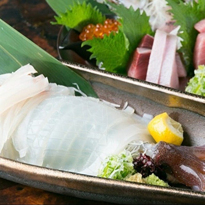 名鉄名古屋本線「東岡崎駅」南口から近く店を構える【生簀炉ばた源喜】。店内に生簀のあり、鮮度抜群な捌きたての活いかや活魚などをお楽しみいただけます。また源喜の原点である自慢の炭焼もお楽しみいただけます。ご宴会には、鮮度抜群の活いかが楽しめる宴会コースをご用意しています。最大30名様をご案内できる広間や、4人掛けの掘りごたつのお席など、ご利用人数やシーンに合わせたお席とコースをご用意しております。お気軽にご相談下さい。