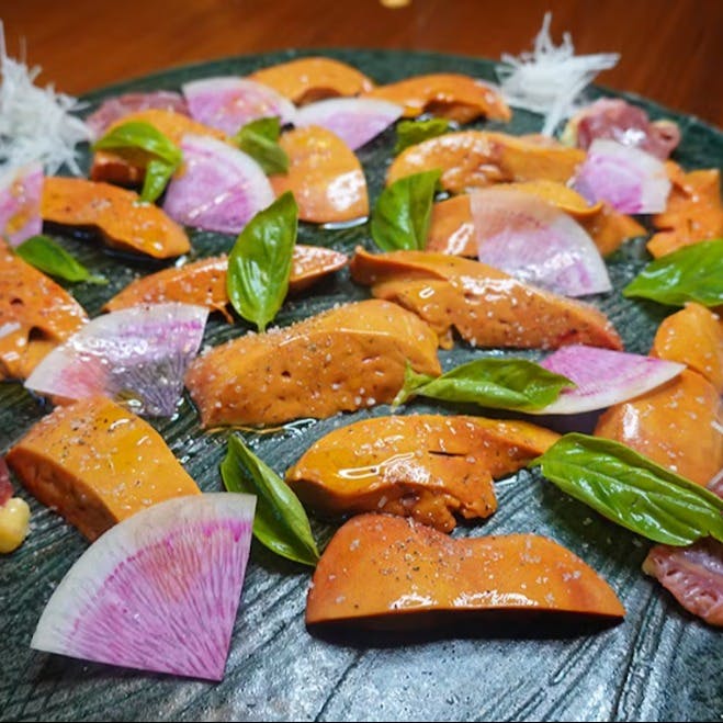 活地鶏専門店ならではの鮮度、そして目利きによって良いものだけを厳選して提供している「じどりや穏座」。飼育から販売までを一貫して行うことで他にはない、地鶏の魅力が詰まった料理をお楽しみいただけます。1日の受付組数は3組限定。時期によってはカウンター席やテラス席でも新鮮な鶏料理をお楽しみいただけます。そして店内には先代のこだわりが詰まった落ち着いた空間が広がります。カウンター席の椅子や食器棚に使用する木材から、音響が響きやすいよう設計された天井の高さまでゆったり と過ごしてもらえるような工夫が随所に施されています。都会の喧騒を忘れる贅沢な空間で、飼育から行うからこそ実現できる、愛と哲学に満ちた一品をご賞味下さい。