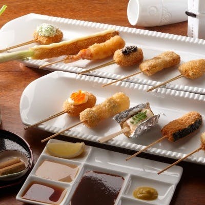 京都駅ビル11階に佇む【串の坊】は、創業以来変わらぬ老舗の味を守り続ける串カツ専門店です。目の前で丁寧に揚げられるアツアツの串揚げは、サクサクの衣と厳選された食材の旨みが口の中に広がる至福の味わい。定番の串はもちろん、季節の旬な食材を使った創作串も豊富にご用意しております。お一人様でも気軽に立ち寄れるカウンター席は、揚げたてをすぐに味わえる特等席。お仕事帰りやショッピングの合間に、こだわりの串揚げと美味しいお酒で至福のひとときをお過ごしください。7種類のコース料理に加え、お好みの串をストップするまでお楽しみいただけるおまかせコースもございます。