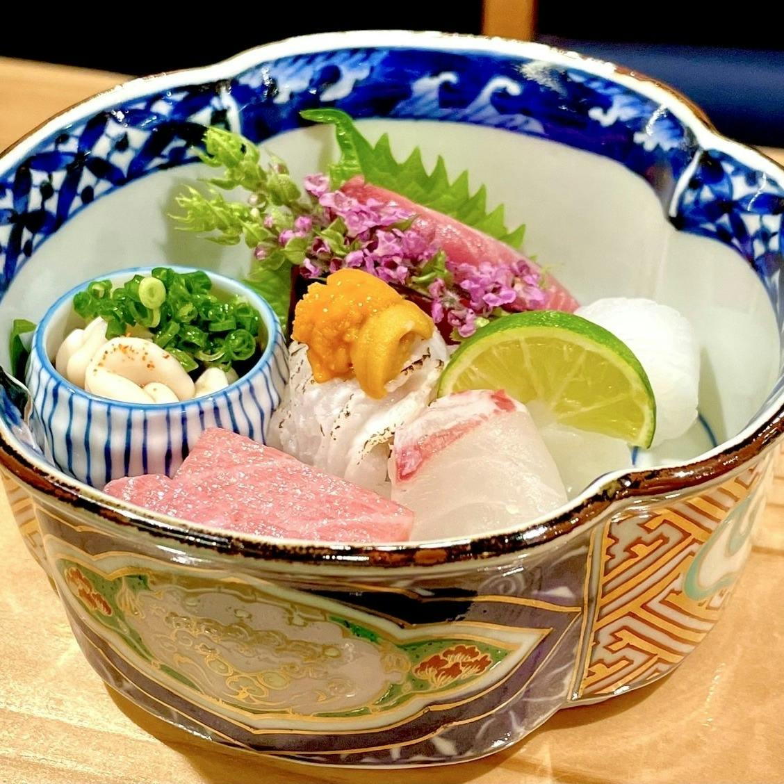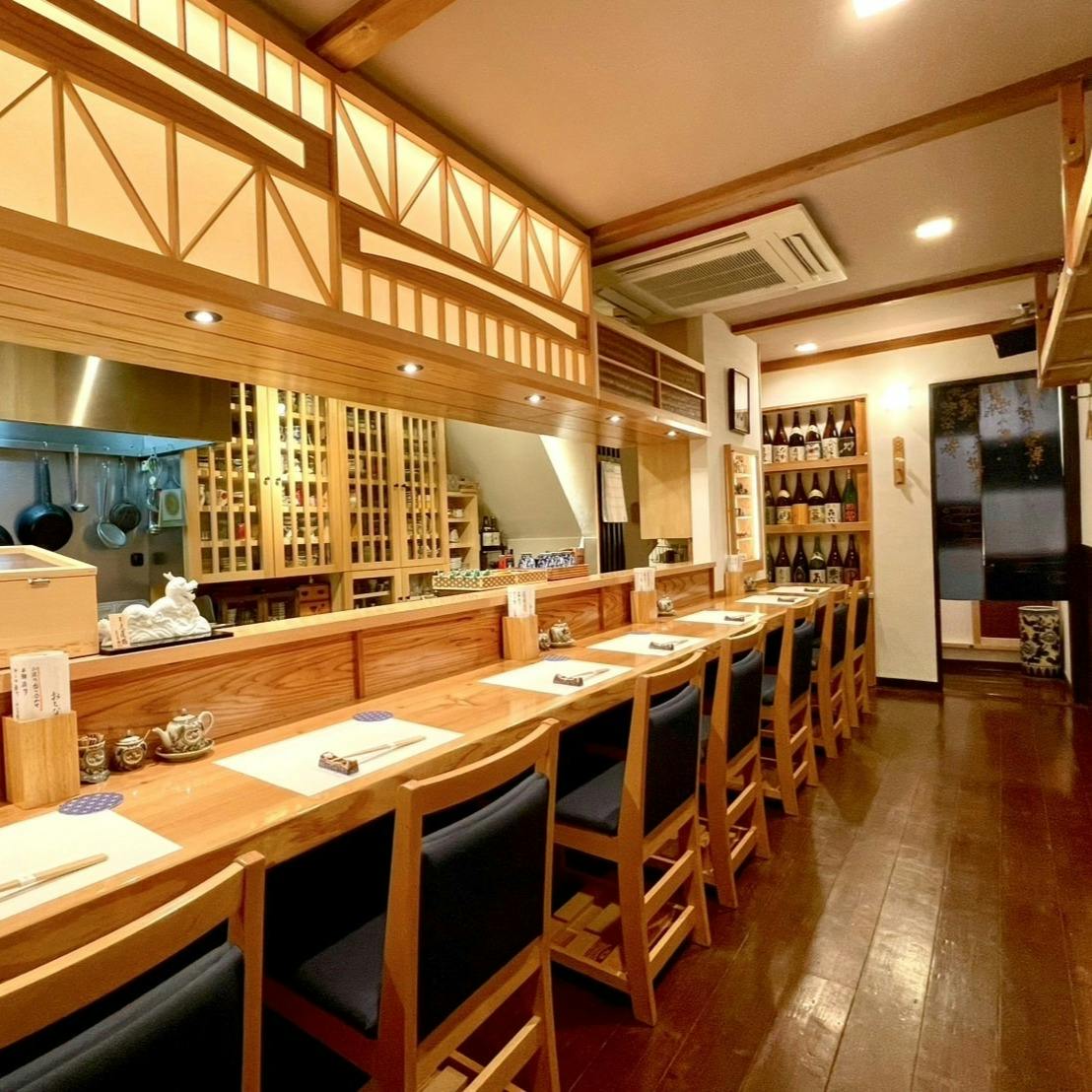 その時期の新鮮な旬の魚を使った料理をお楽しみください。店主が選んだ銘酒は、珍しい銘柄も多く取り揃えています。静かな店内で、ゆっくりとお料理とお酒を味わいながら、心地よいひとときをお過ごしいただけます。落ち着いた雰囲気の中、贅沢な時間をお楽しみください。