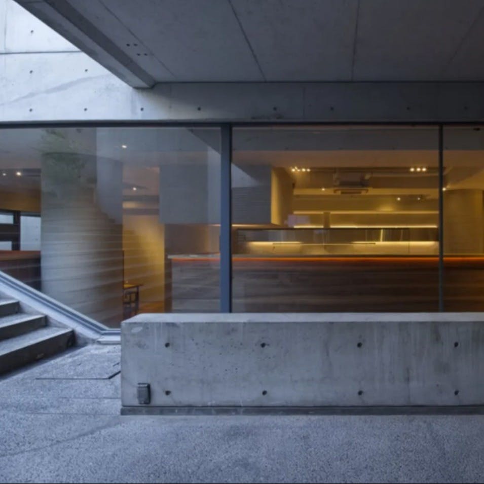 昭和後期に建築家安藤忠雄氏により建築されたビル、RIRAN’S GATE。 その地下には、光を巧みに取り入れた天井高とゆとりのある空間。 冷たく美しい無機質なコンクリートは、レストランという温かくおもてなしのある空間をより鮮やかに映し出します。 そこには調和が生まれます。 神戸の財産でもある銘建築の中で、時間を忘れてゆっくりとお食事とワインをお楽しみください。