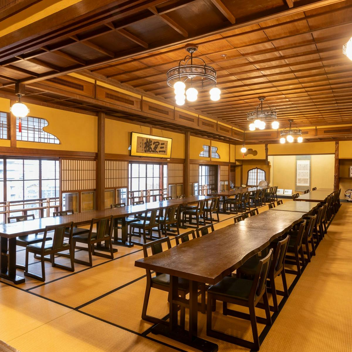 昭和六年築、門司港の歴史を今に伝える構成文化財「三宜楼」。往時の格式と雅が息づく館内にて、選び抜かれたとらふぐ料理をご堪能いただけます。極上の薄造りから、旨味を引き出した唐揚げ、そして名物「とらぶつ」まで。新鮮なとらふぐを贅沢に使用したお料理を、完全予約制にてご提供しております。昼夜問わず、特別なひとときをごゆっくりお楽しみください。 また、日中はご予約不要の喫茶営業も行っており、上質な抹茶や甘味とともに、趣深い館内の見学もお楽しみいただけます。四つの個室と絢爛な大広間を備えた空間は、慶事やご接待、観光のご休憩にも最適です。歴史と美食が織りなす、非日常のひととき。門司港レトロの象徴・三宜楼で、心ほどける贅沢な時間をお過ごしください。