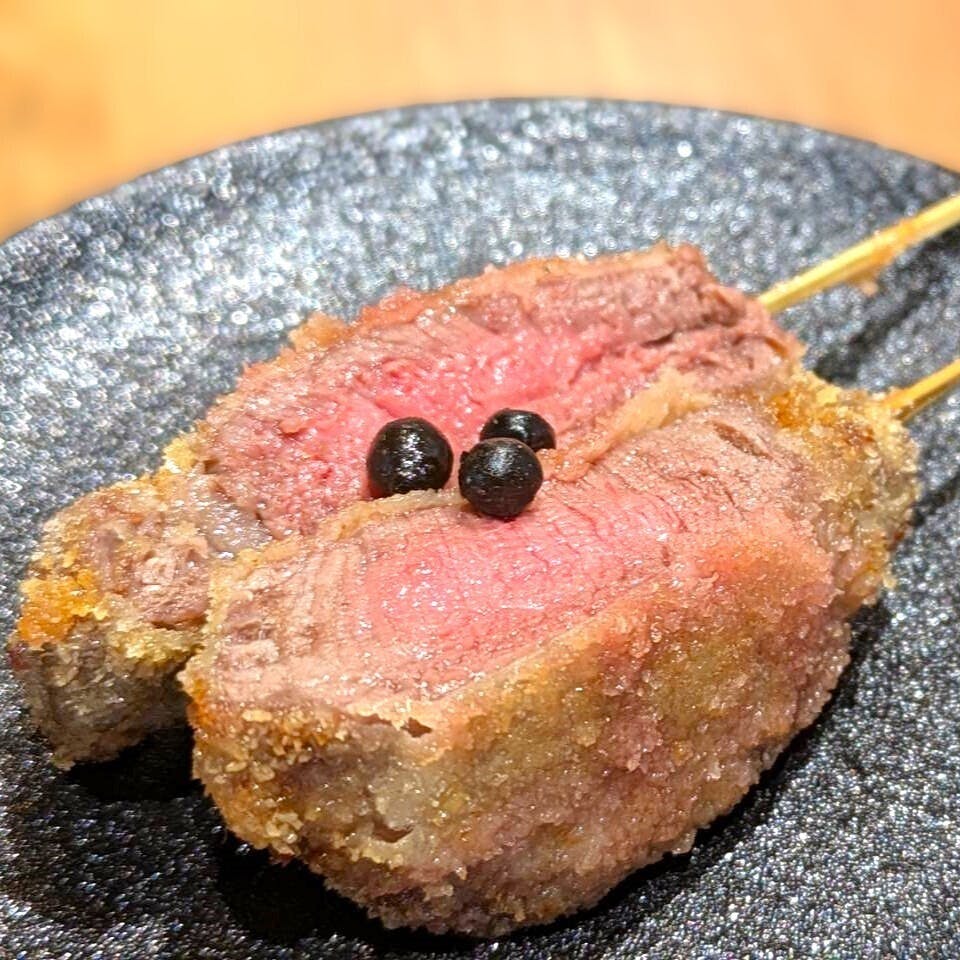 肉のプロが厳選した国産牛ヘレを使用した極上の串カツと、有名ホテルで腕を磨いたフレンチシェフによる華やかな創作串揚げ。米粉と米油で仕上げる軽やかな衣に、繊細なソースと美しい盛り付け。ひと口ごとに驚きと感動が広がる、ここでしか味わえない“新しい串の世界”を、古民家を改装した上質な空間でご堪能ください。