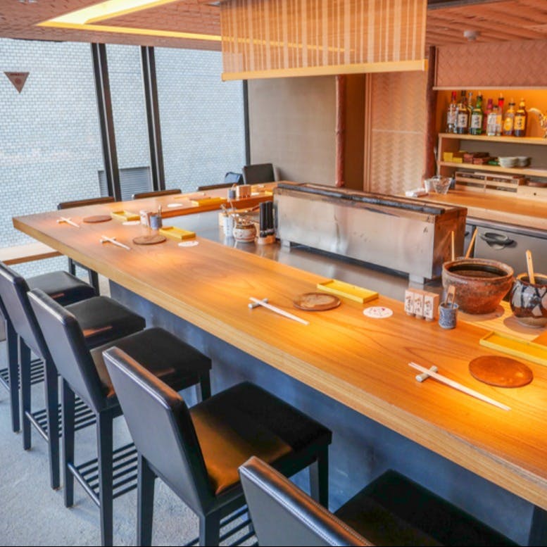 阪急京都線 烏丸駅から徒歩5分に位置する「とりの小路 やま岸」。京都の名店「富小路やま岸」が手掛ける焼鳥店です。長期育成による旨みと歯ごたえが特徴の「黒さつま鶏黒王」を取り入れた串や、「京赤地どり」を使用した串など店主自ら目の前で焼き上げます。店内の中央には焼き場を設けているため、焼きあがる調理過程や香りを楽しみながら楽しむことが可能です。高層階ならではの開放感ある店内でゆったりとをお楽しみ下さい。