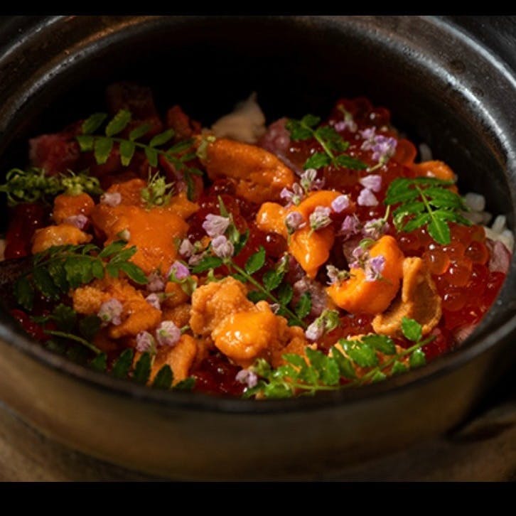 〆には、季節の食材を使った特製の炊き込みご飯が登場。うに、いくら、牛肉が彩る美しい土鍋は、見た目だけでなく味わいも絶品です。出汁と米が主役となり、うにがほんのりと引き立つ贅沢な一品。お米の香りと深い味わいが、心地よい余韻を残します。季節感あふれるこのご飯で、最後まで至福をお楽しみください。