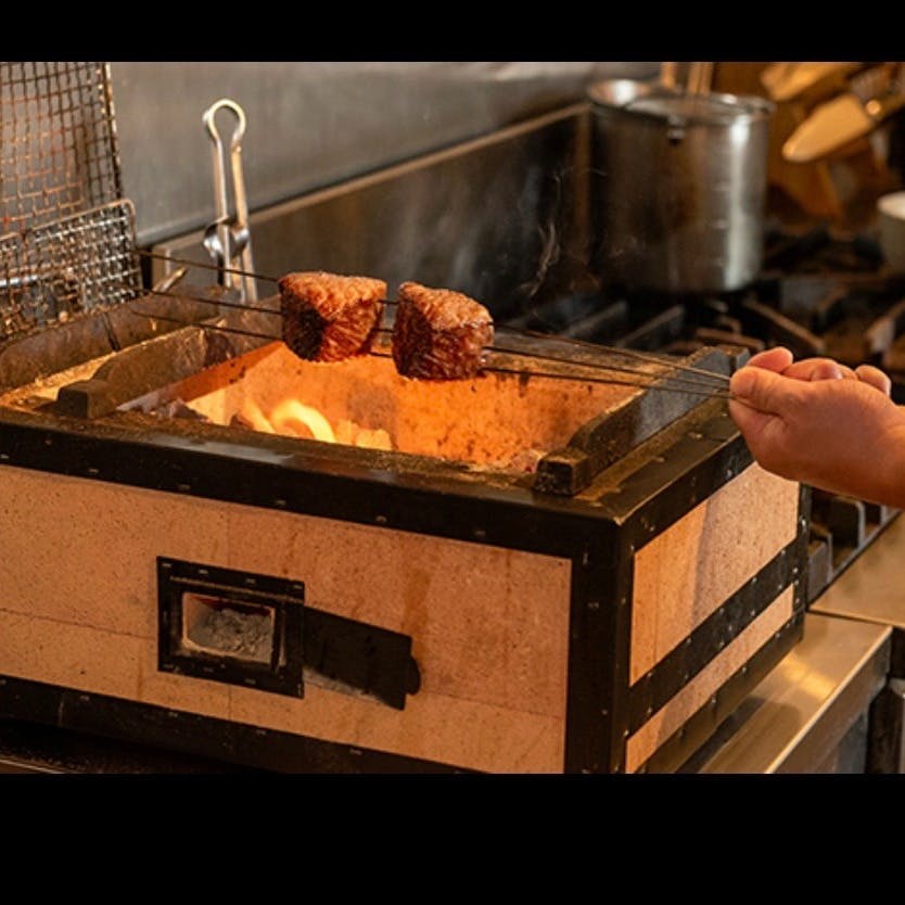 当店では、カウンター席から大将の調理風景を間近でご覧いただけます。炭火焼きの料理を目の前で焼く様子は、まさにライブ感満載。焼ける音と共に立ち上る香ばしい香りも楽しめ、食欲をさらに刺激します。目で、耳で、そして香りで料理の魅力を感じながら、特別なひとときをお楽しみください。