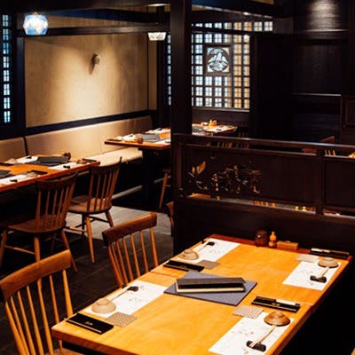 JR・地下鉄丸ノ内線東京駅直結の丸ビル6階にある「紀州山海料理 愚庵 丸の内店」。和歌山に本店、東京・銀座に姉妹店を持つ和食の名店「銀平(ぎんぺい)」の系列店です。店名の通り、和歌山県産の食材を中心に使用し、紀州うめどり・熊野牛・南高梅・鮮魚など和歌山の食材や地方料理にこだわった「ごちそう」をテーマに、逸品の数々をご提供いたします。店内の落ち着いた雰囲気は、ご家族やご友人とのお食事だけでなく、大切な方との特別な日のお食事にも最適。ビジネスシーンでのご利用も多数いただいております。幅広いシーンでご利用ください。