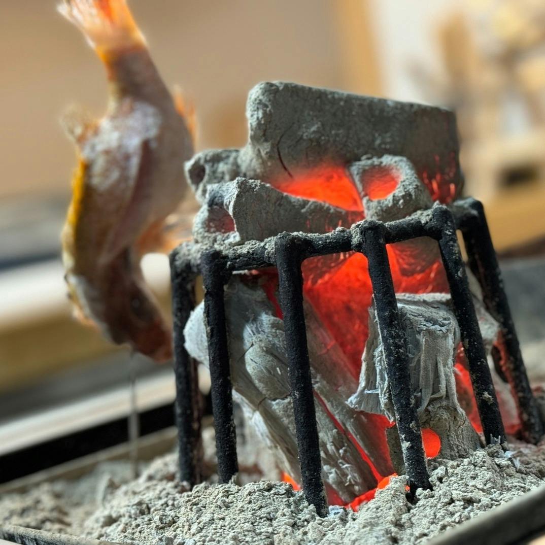 目の前で焼き上げる囲炉裏焼きコース3300円/1名から。 春のご宴会!最大36名様同一空間で可能。 宮崎でも希少な特大メヒカリや宮崎地鶏、湧水で育った有田牛の炭火焼も。 宮崎の郷土料理と囲炉裏焼きに新たなアプローチを。ライブキッチン・カウンターで心踊るワクワクする素敵なひと時をお過ごしください。
