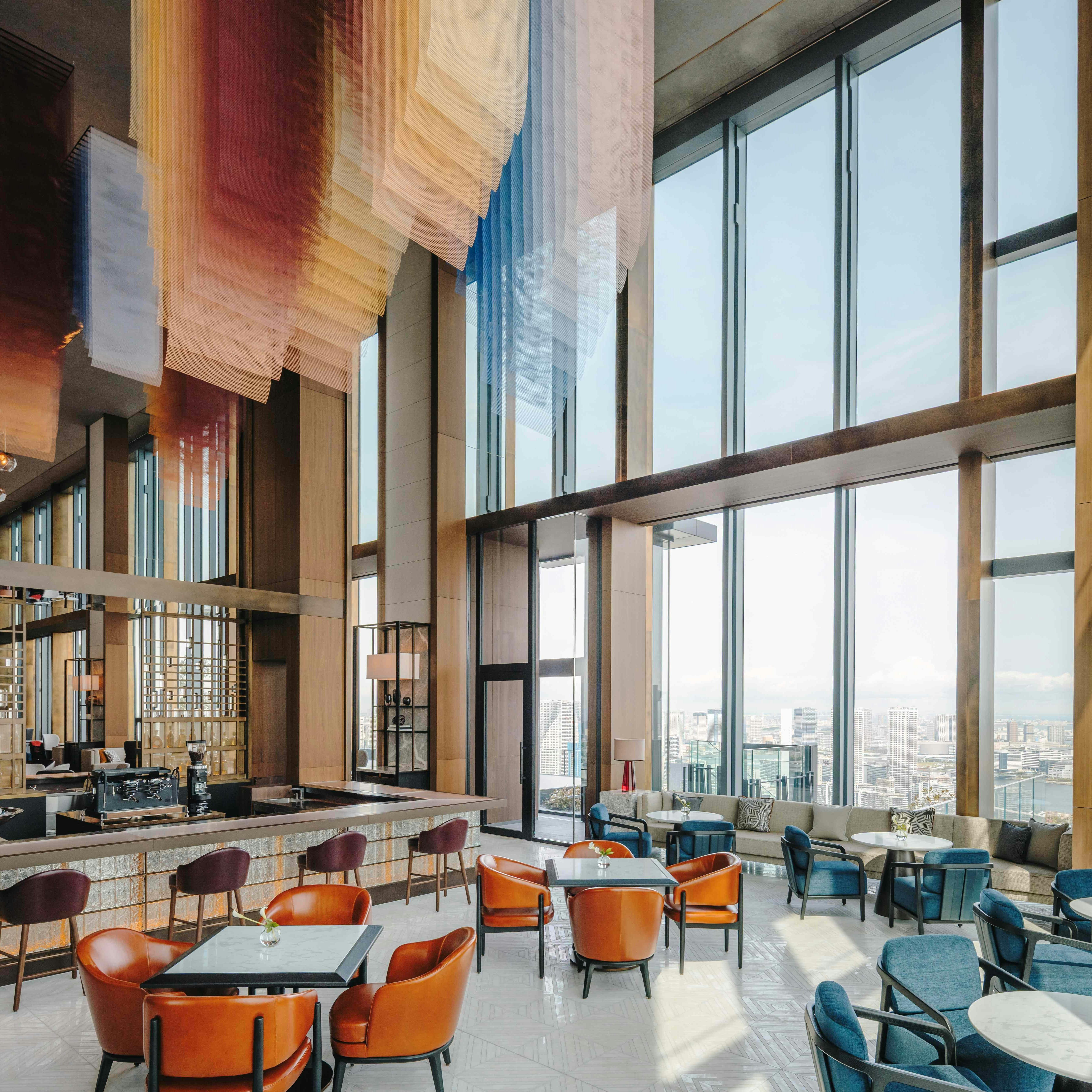「Vue Mer(ビュメール)」は、東京湾を望む絶景テラスを有するフェアモント東京のロビーラウンジ。フランスと日本、それぞれのラウンジ文化が美しく融合した空間で、特別なひとときをお届けします。 シグネチャーのアフタヌーンティーは、フレンチの伝統と和の美意識が交差する二つのテーマから選べ、繊細なパティスリーや創作セイボリーをご堪能いただけます。 さらに、トロリーサービスで提供される出来立ての一品や、カナダの「プティーン」、和の「カツサンド」、ミクソロジスト考案のアイスクリーム「Liquream」など、多彩な軽食も魅力。 店内のショーケースには、職人技と季節感が光るスイーツが美しく並び、贈り物にも最適。 五感で楽しむ極上のラウンジ体験を。