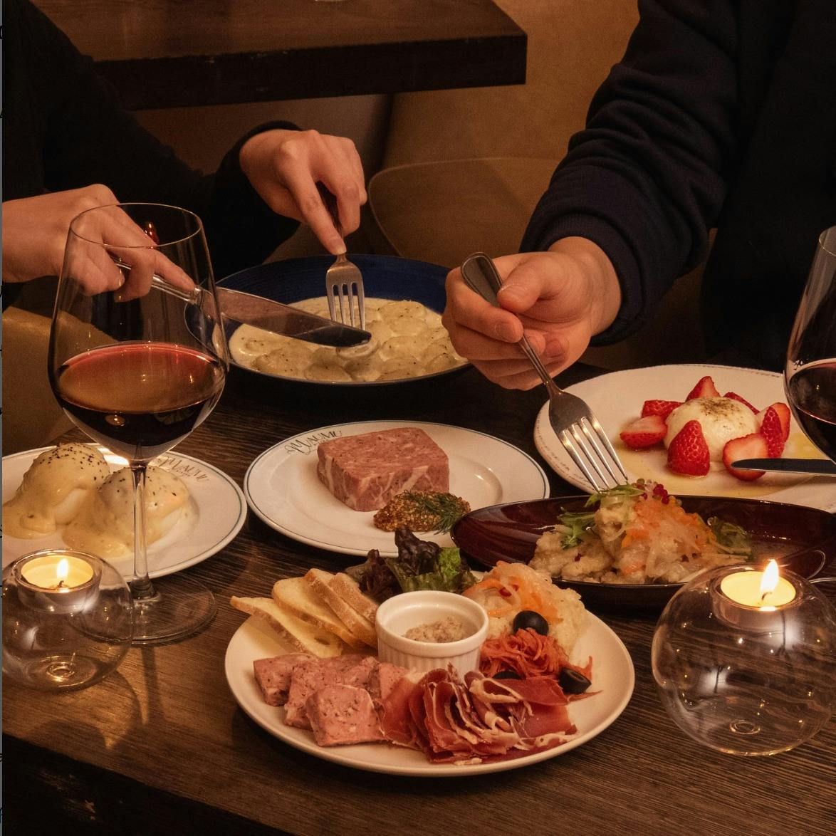 季節の素材を活かした本格フレンチと、料理に寄り添うソムリエ厳選ワインが楽しめるビストロです。パリの街角を思わせるお洒落な空間で、五感が喜ぶひとときを。フレンチを中心に、イタリアンやスペイン料理のエッセンスも取り入れた逸品を、ワイン片手に気軽に楽しめます。オマール海老や和牛が味わえる特別なコースは、お誕生日や記念日などの特別な日にも最適。アラカルトでのご利用も可能です。大切な人と過ごす、心に残るひとときをBISTRO MAUMUで。