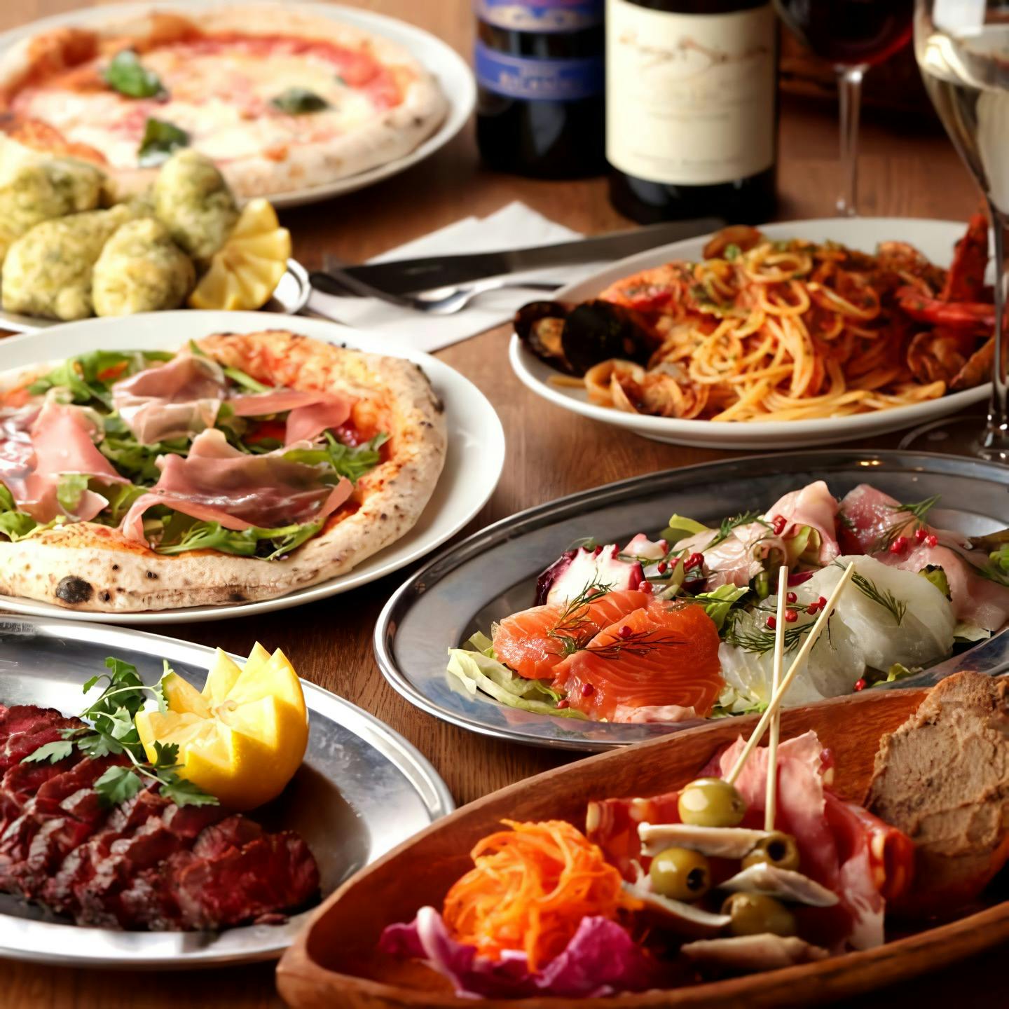 「窯焼きピザとワインのお店 ROMAE 炉前」は、本格窯焼きピザとワインが自慢のイタリアン。世界大会優勝チーム監修の生地は、外はカリッ、中はモチモチの絶品!ピザだけでなく、パスタやアヒージョなど、種類豊富なメニューも楽しめます。お洒落な店内で、こだわりの料理とワインを心ゆくまでご堪能ください。