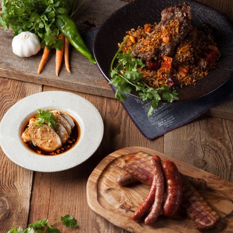 東京の真ん中にいながら、まるで森の中にいるような心地よさを感じられる空間。香りをテーマにした中華エスニック料理と共に、ジャパニーズシングルモルトウイスキー「白州」をお楽しみいただけます。各種宴会にぴったりなコースも多数ご用意しており、貸切パーティーは土日祝日もご予約可能です。料理長の自由な発想が生み出す「香る逸品」を是非ご堪能ください。