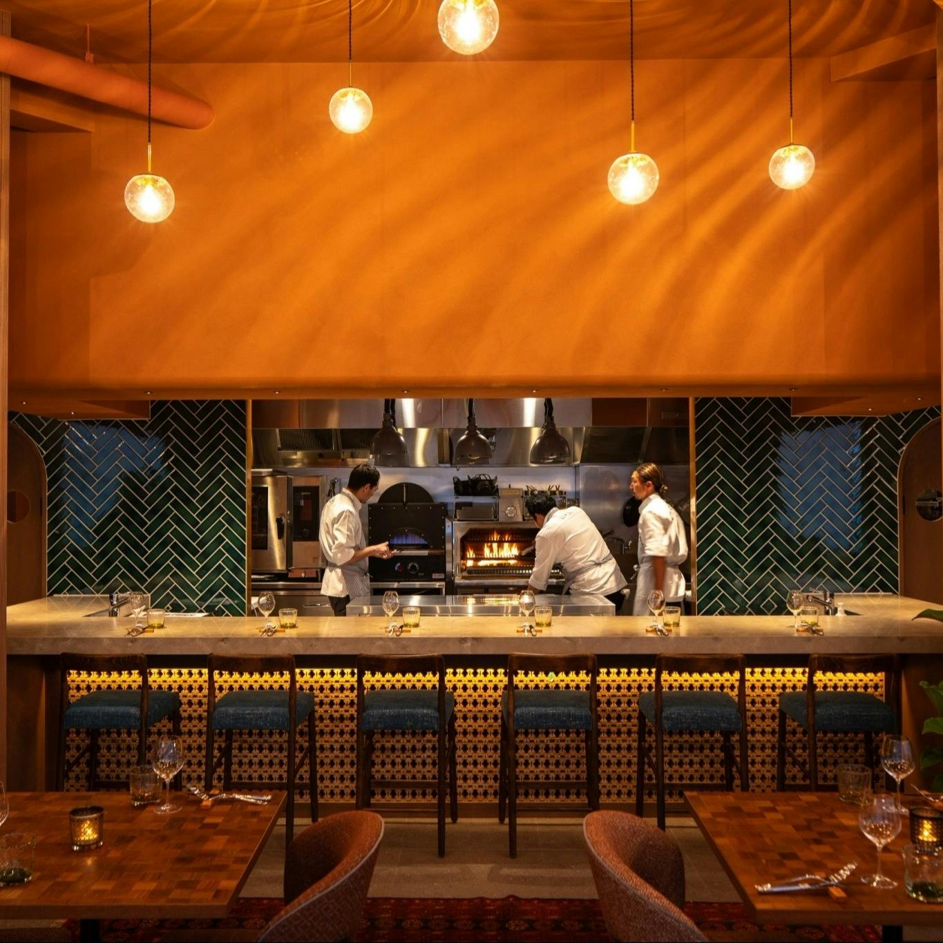 オープンキッチンならではの臨場感が広がる空間。広がる地中海の明るい雰囲気と、沖縄・古宇利島の穏やかな空気が融合した店内は、まるでリゾートのような開放感と心地よさに包まれています。料理が仕上がる瞬間まで楽しめる、食の舞台ともいえるライブ感に満ちた時間をお楽しみください。