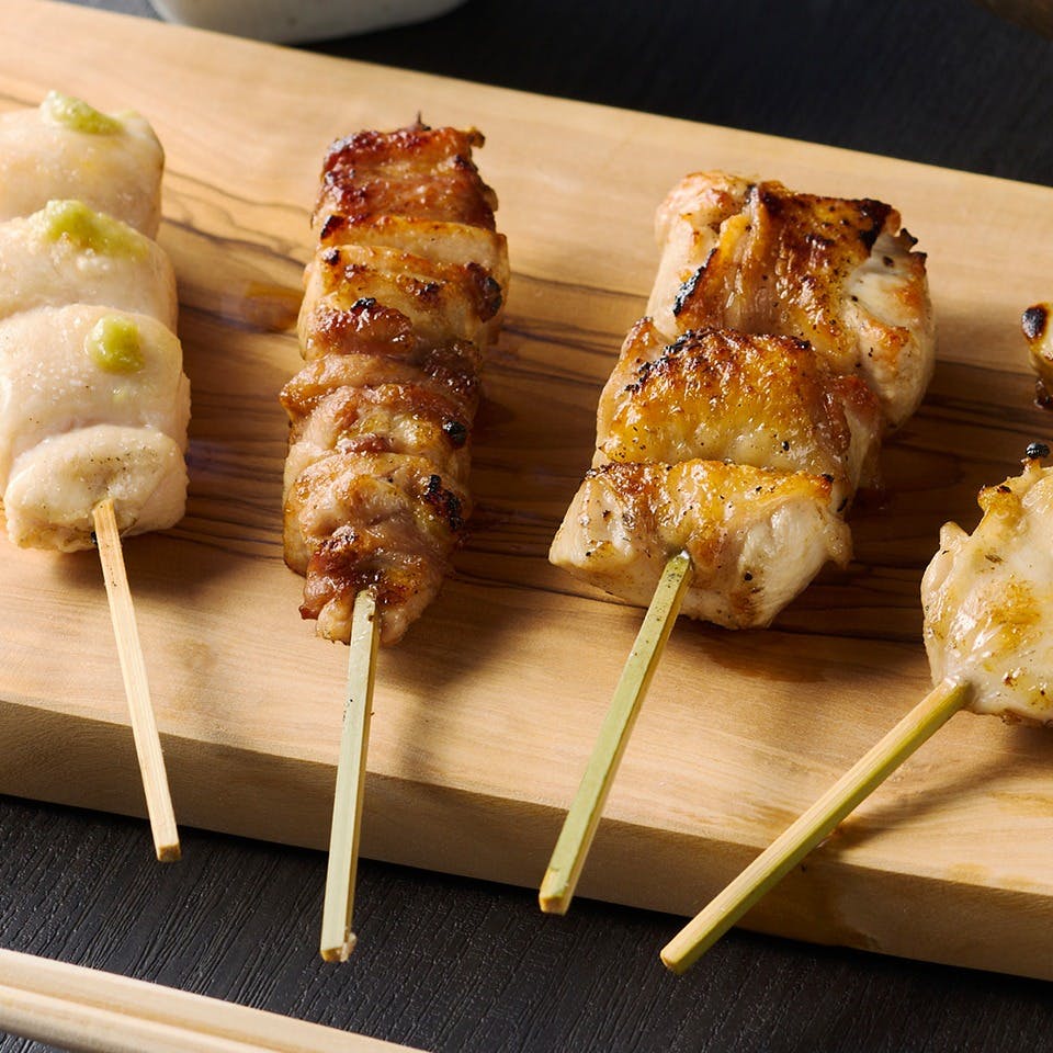 全国各地から厳選した地鶏や銘柄鶏を使用。「地鶏」とは、在来種の血統50%以上、75日以上の飼育、平飼いで一定の飼育密度など、厳しい条件を満たす希少な鶏で、日本全体の流通量はわずか1%に過ぎません。そのため、よく運動し、長期飼育された地鶏の肉質には力強い旨みと香りがあり、ほどよい弾力と歯ごたえを感じられるのが魅力です。部位ごとに異なる状態を見極めながら丁寧に処理し、一本一本の串打ちはもちろん、焼き加減や味付けに至るまで、店主が丁寧に調理いたします。日本酒やワイン、料理に合うお酒も豊富に取り揃えております。一枚板のカウンターで、職人の技と素材の力をぜひご堪能ください。