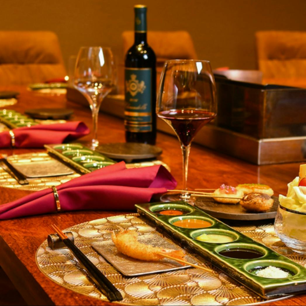 厳選食材を手間暇かけて一串ずつ丁寧に創意工夫を凝らしております。串揚げに重要な油はオランダ産の最高級ラードを使用し、質を保つために1回転ごとに新しい油に取り替えます。パン粉は、きめ細かさにこだわり何本でもお楽しみいただけるよう軽やかな仕上がりに。究極の串揚げを是非一度ご賞味ください。