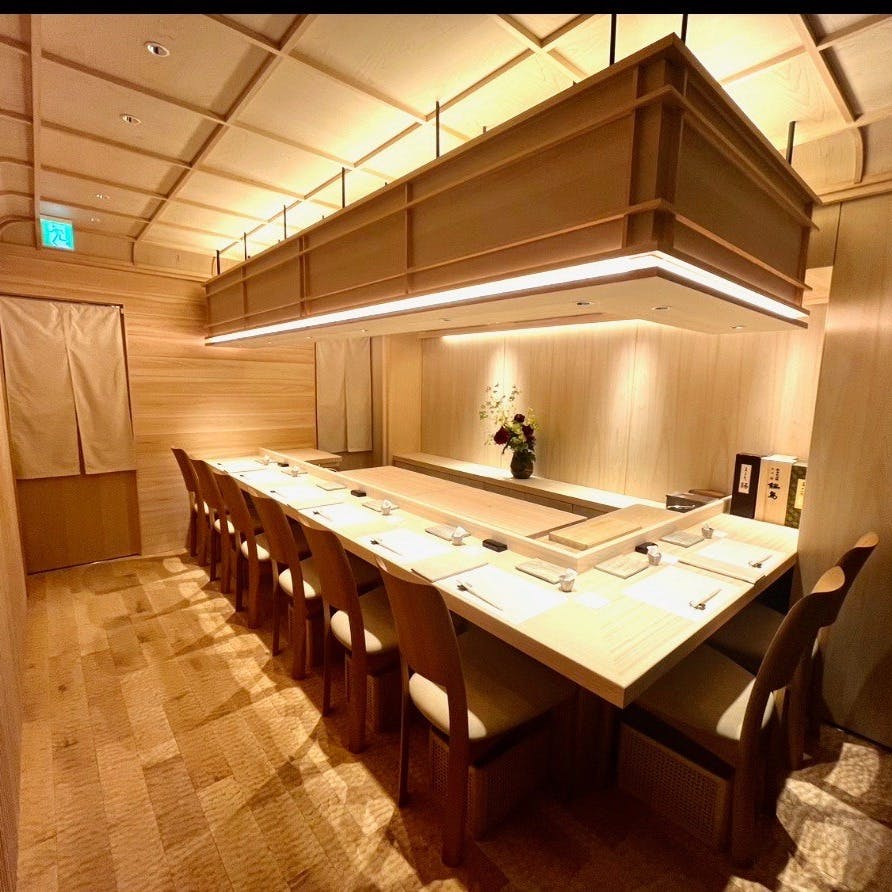 魚の旨さを引き出すために選ばれた食材と技法。豊洲から届く全国各地の上質な魚介、そして千葉の海で獲れる新鮮な地の恵み。その日そのときにもっとも美味しい“食べごろ”を、一貫ごとに丁寧に仕立てています。 店内に広がるのは、樹齢500年の吉野檜を使ったカウンターを中心に、木のぬくもりが心地よく漂う凛とした空間。器、照明、しつらえのすべてに気配りが行き届き、静かに流れる時間のなかで、寿司と向き合う贅沢を堪能できます。 日常から少し離れて、季節と向き合う食のひとときをお楽しみください。