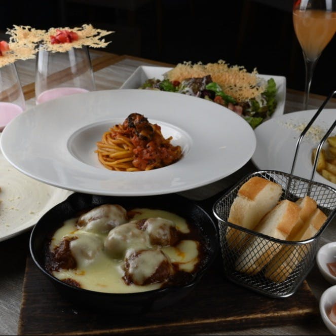 本格イタリアンと肉料理を軸にした、満足感たっぷりのコースが人気のカラソルクオリア。誕生日や記念日には、世界チャンピオンによるカクテルショーの演出も可能で、大切なひとときをより特別に彩ります。店内は落ち着いた大人の空間で、貸切も対応。飲み放題は約100種類と驚きのラインナップ。バー仕込みの本格カクテルも、好みに合わせて一杯ずつ丁寧に提供。非日常を感じられる時間をお届けします。