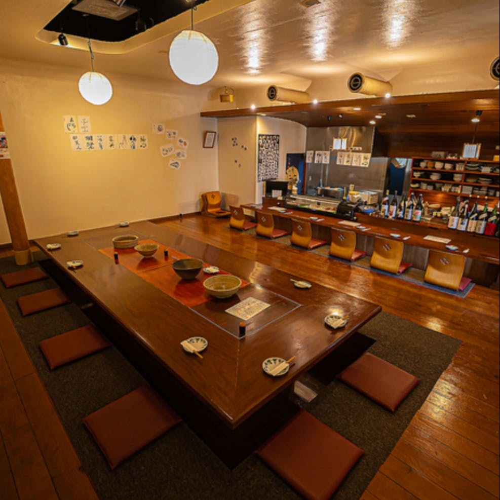 季節ごとに違った旬の魚や食材を味う事ができ、春夏秋冬いつ来ても新鮮で枠をとらわれない創作和食をご用意。 お料理に合わせたお酒も多数ご用意し、お一人や家族連れ、宴会でもご利用いただけます。 当店の掘りごたつ大テーブルは大人数でのご利用に最適です。 カジュアルに旬の創作料理を小倉でご堪能ください。