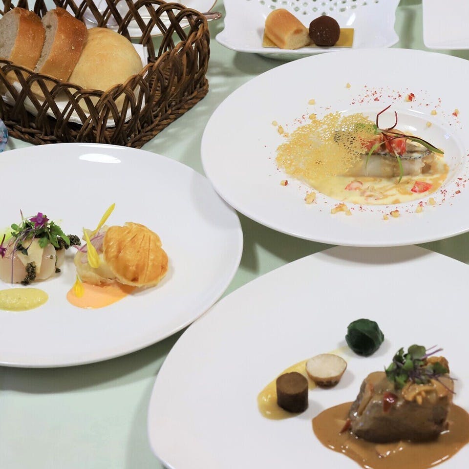 弘前の中心地に佇むフレンチレストラン。地元出身のシェフが30年以上にわたり、地元食材の魅力を引き出す料理を提供しています。店内は大きな窓から自然光が注ぐ開放的な空間で、赤を基調とした温かみのある設えが印象的。自然栽培の野菜や日本海の魚介、自然飼育の豚肉など、素材にこだわったコース料理は、季節の移ろいを五感で楽しめる内容です。りんごを使った冷製スープや弘前産ワインも人気。個室利用も可能で、特別な日の食事にも最適です。