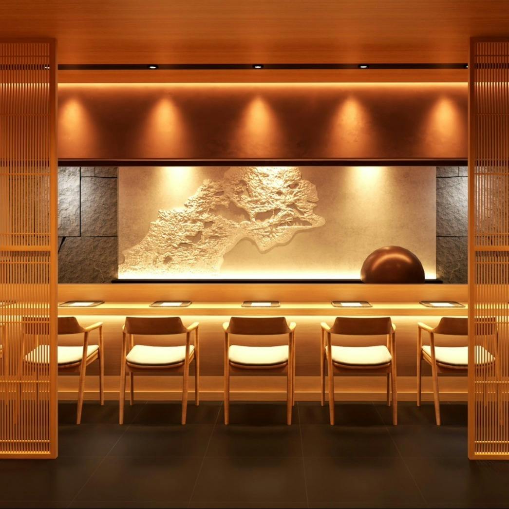 花山うどん銀座店の地下に佇む別邸は、お客様に近い距離で料理を提供したいという思い から希少な天然木曽檜を使用した一枚カウンター7席に個室という少人数制を採用してい ます。創業130年の歴史を誇る花山うどんが提案するおもてなし空間「別邸」は食材や器 など1つひとつに特別なストーリーやこだわりがあり、食の本質と時代の感性が息づいて います。古き良き伝統を継承しつつお客様の常識を覆す感動体験をお届けいたします。
